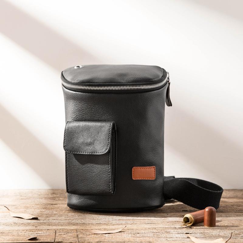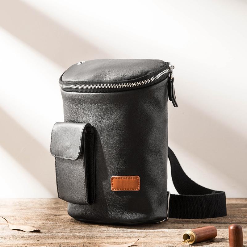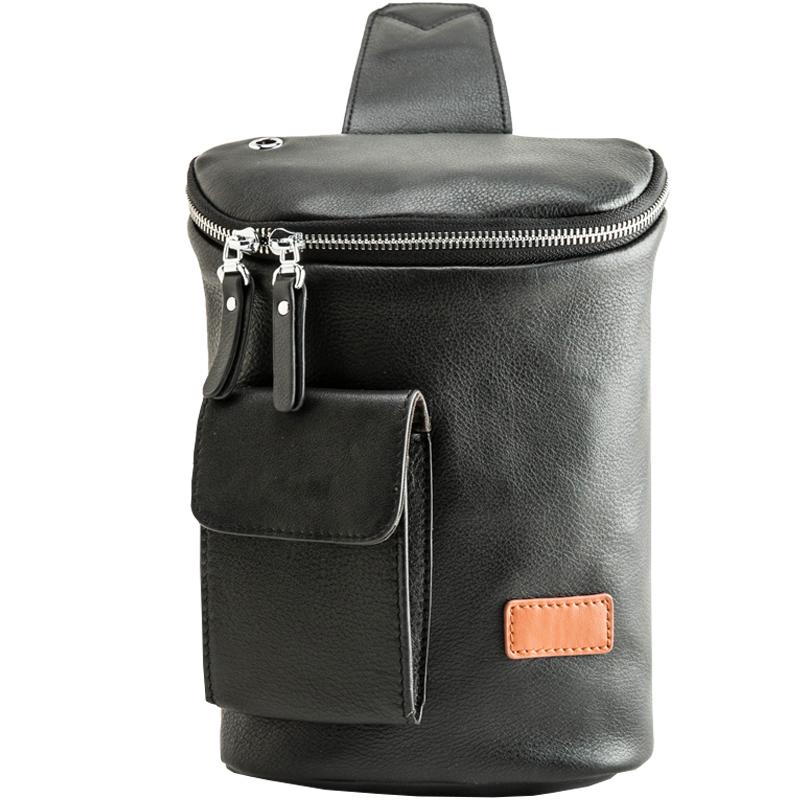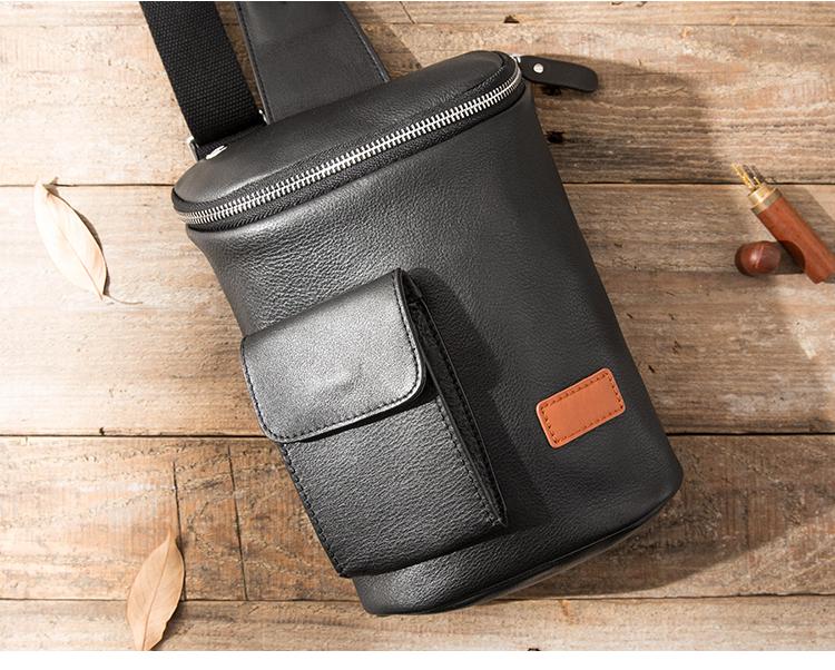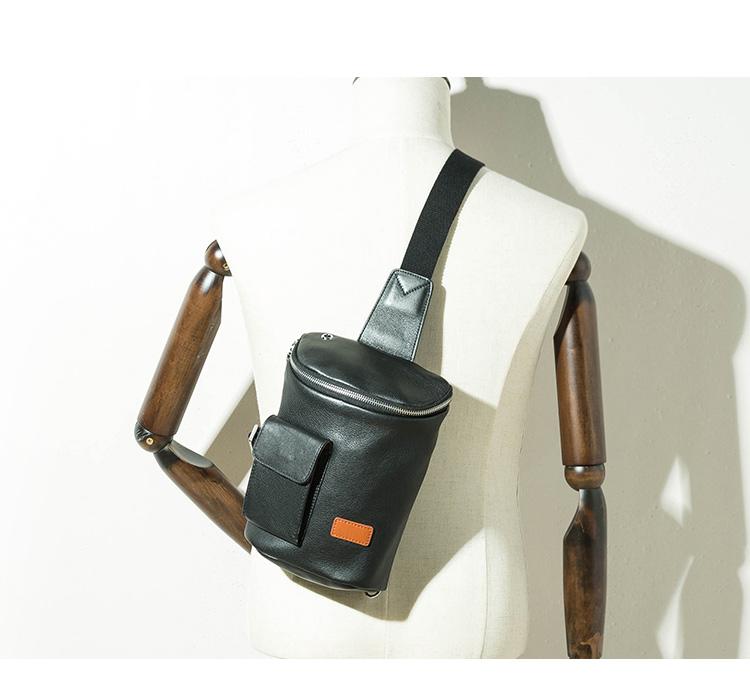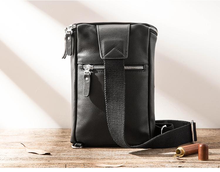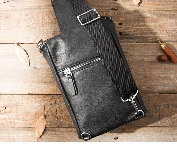 Style: Badass Black Leather Men's 8 inches Sling Bag Chest Bag Black One shoulder Backpack Waist Bag For Men