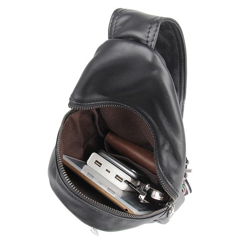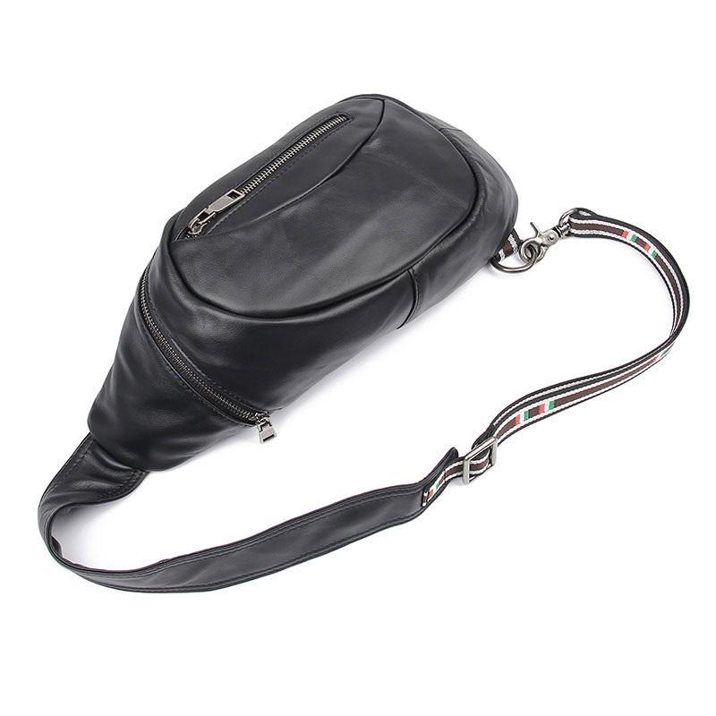 Style: Badass Black Leather Men's 8 inches Sling Bag Chest Bag One shoulder Backpack Sling Bag For Men