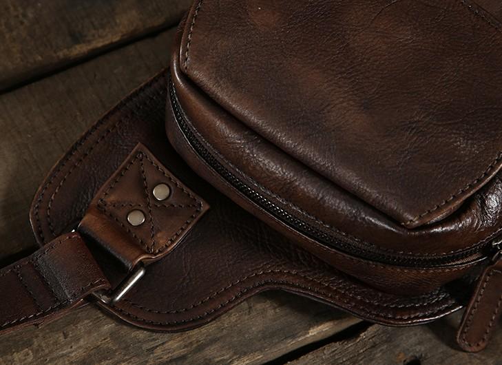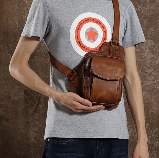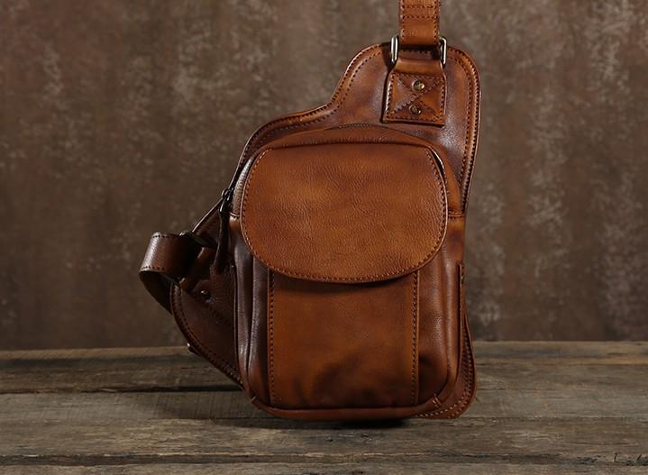 Style: Handmade Leather Mens Cool Chest Bag Sling Bag Crossbody Bag Travel Bag Hiking Bag for men
