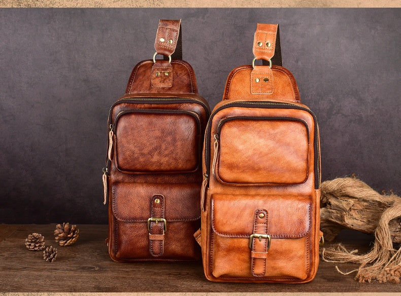 Leather Chest Bag for Men - Premium Vintage Leather