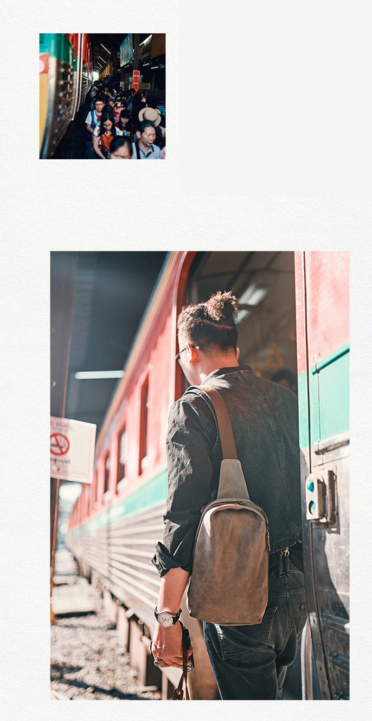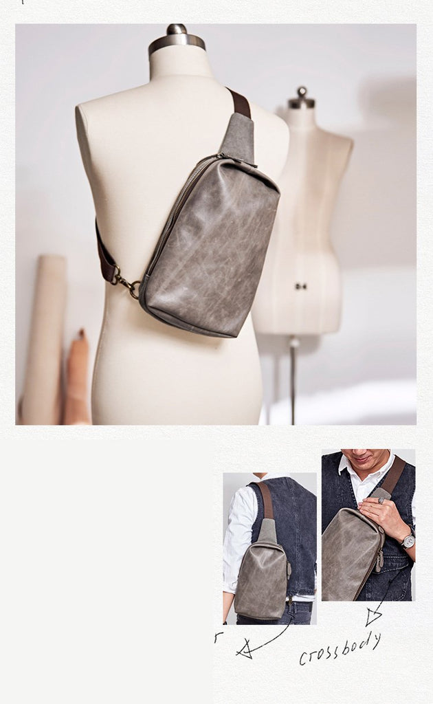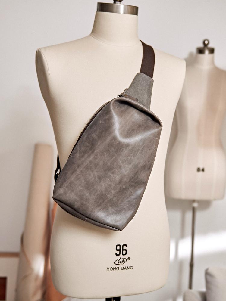 Design: Canvas Leather Mens Gray Sling Backpack Brown Chest Bag Sling Pack Sling Bag For Men