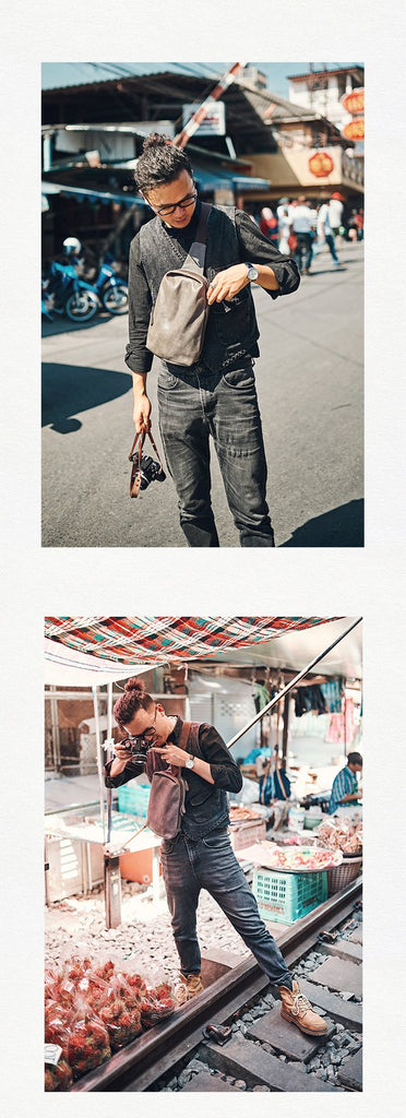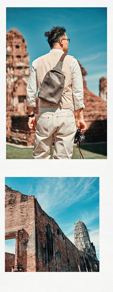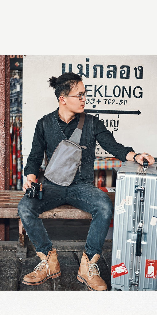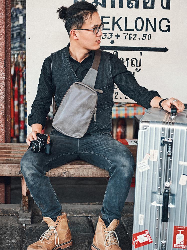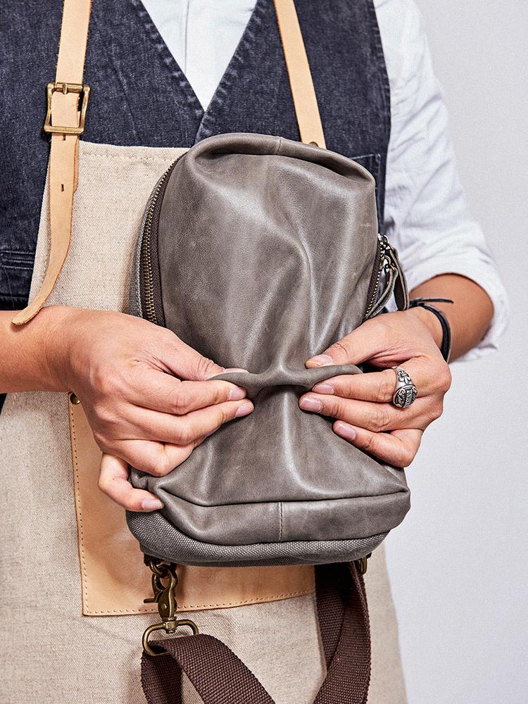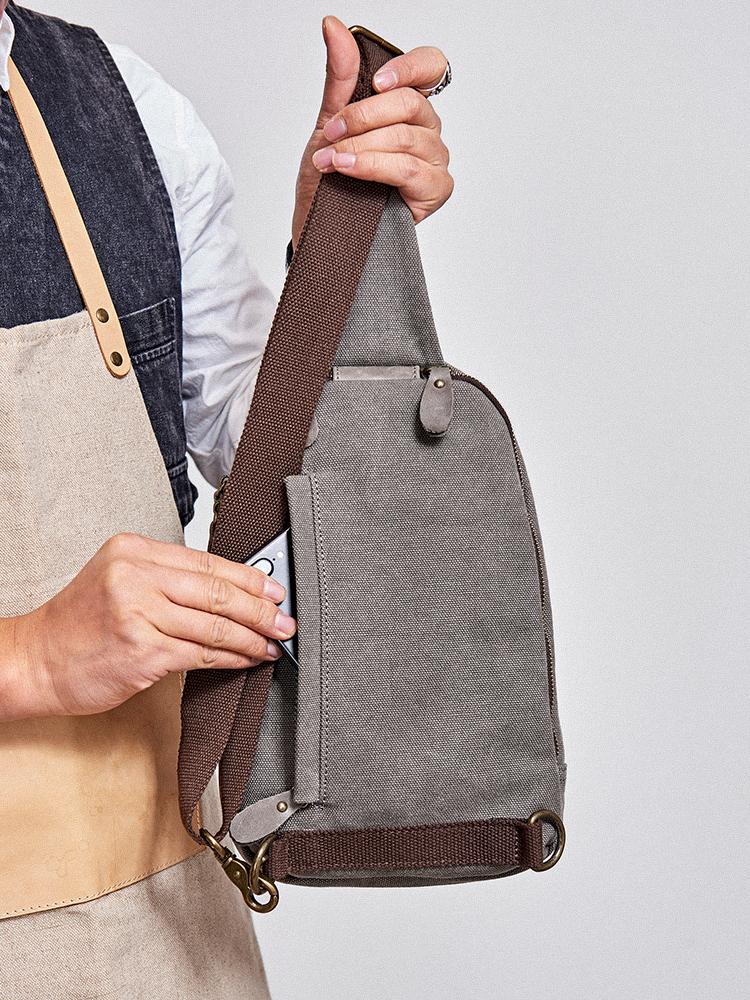 Style: Canvas Leather Mens Gray Sling Backpack Brown Chest Bag Sling Pack Sling Bag For Men