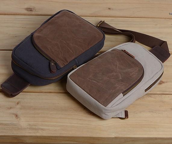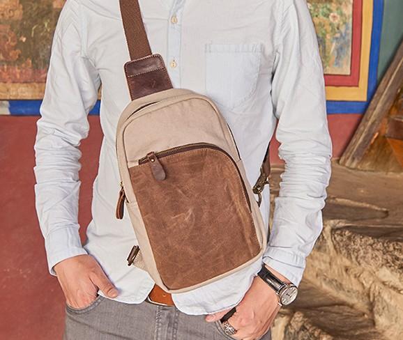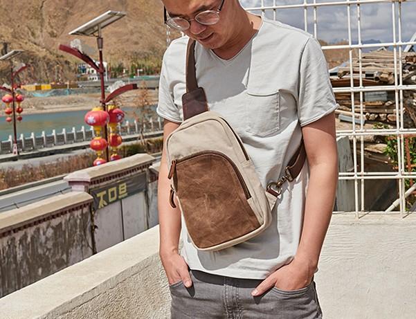 Design: Cool Canvas Gray Mens Sling Bag Chest Bag One Shoulder Pack for men