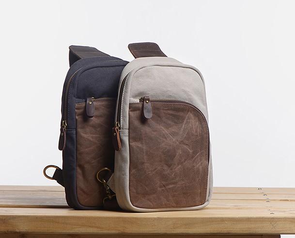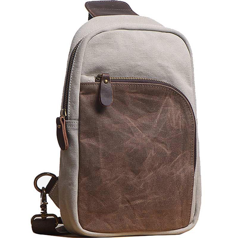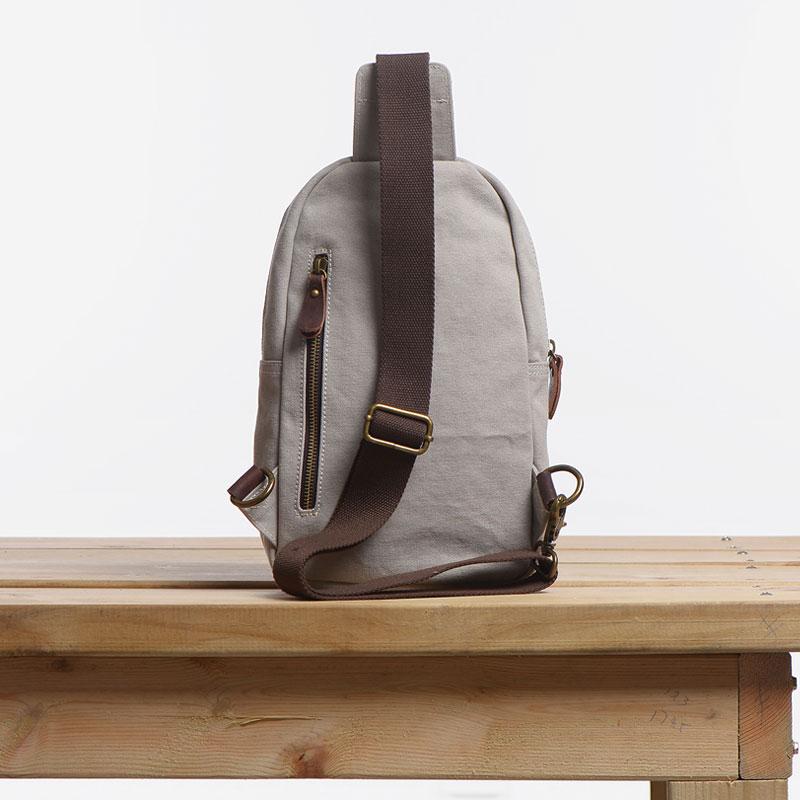 Style: Cool Canvas Gray Mens Sling Bag Chest Bag One Shoulder Pack for men