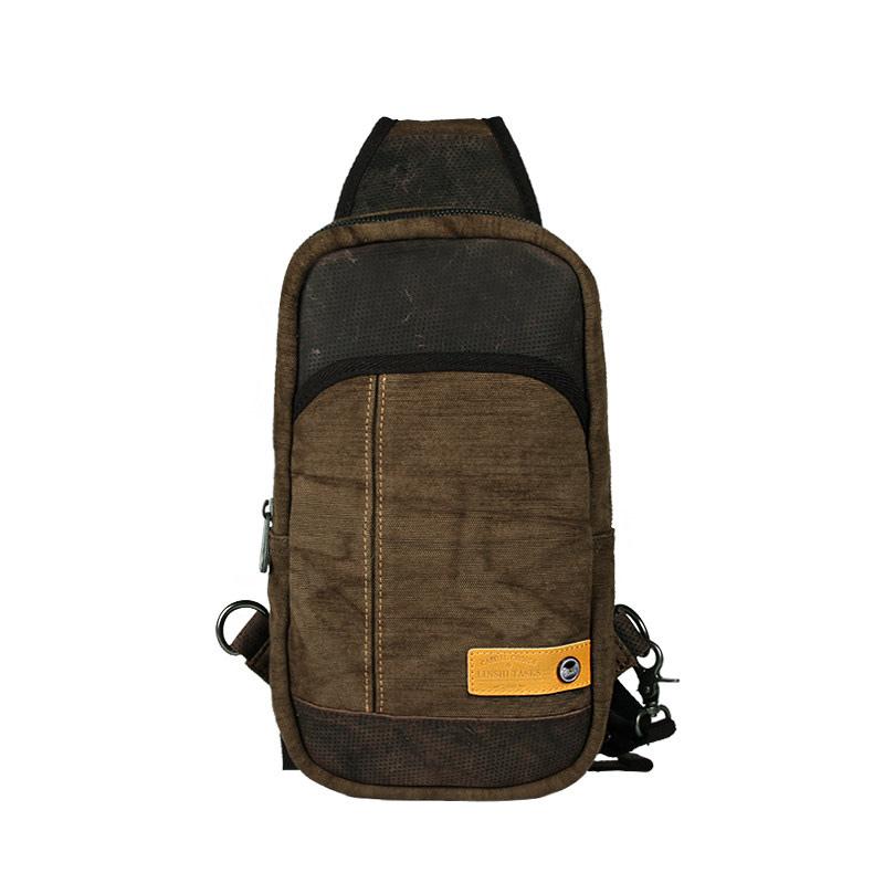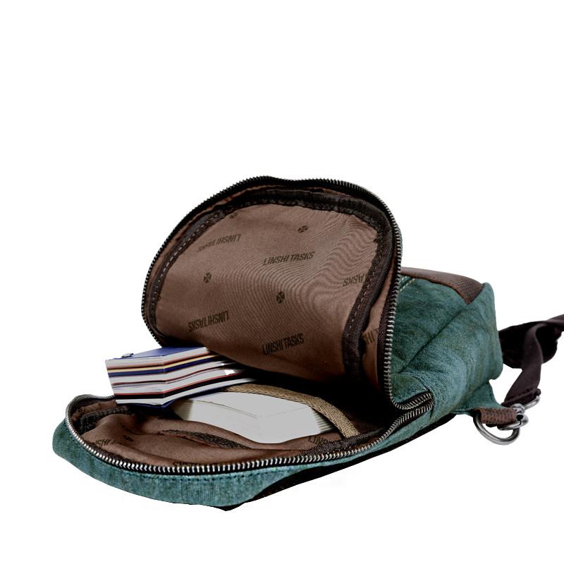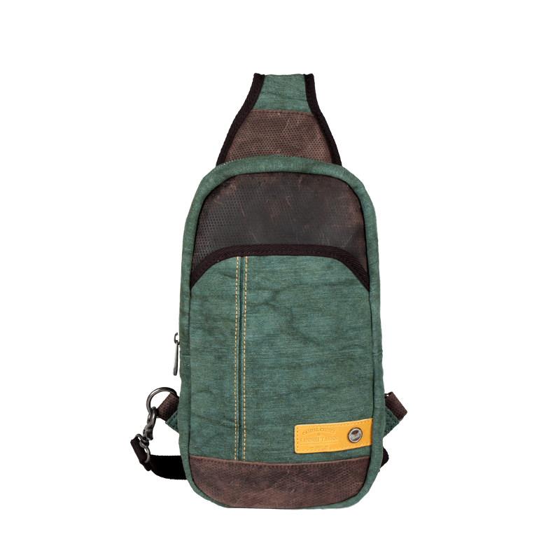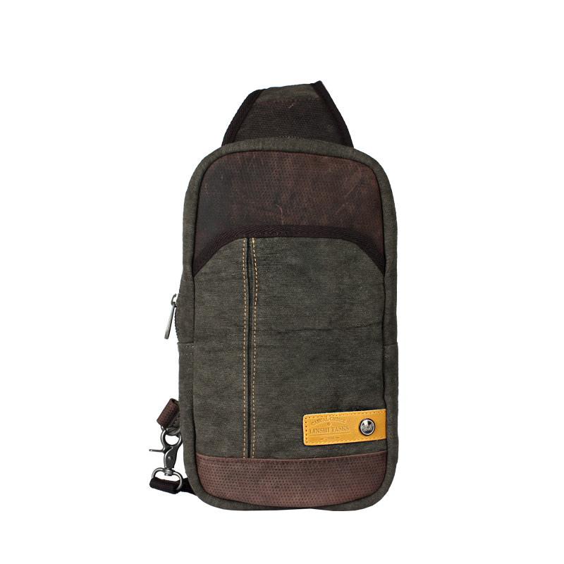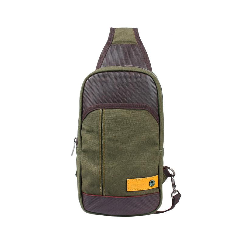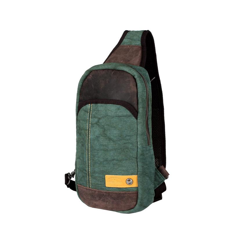 Design: Green Canvas Sling Backpack Men's Sling Bag Coffee Chest Bag Canvas One shoulder Backpack For Men