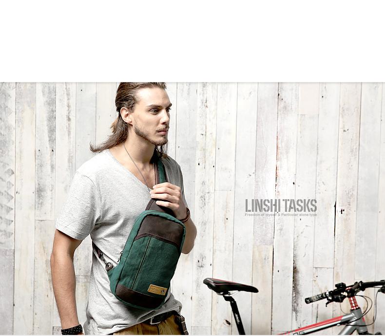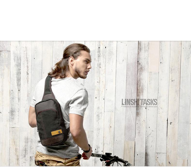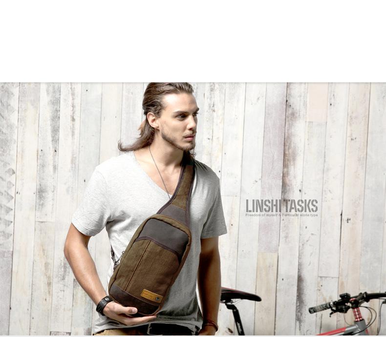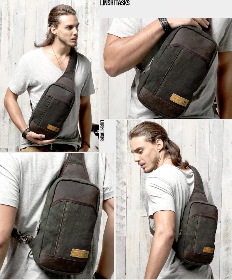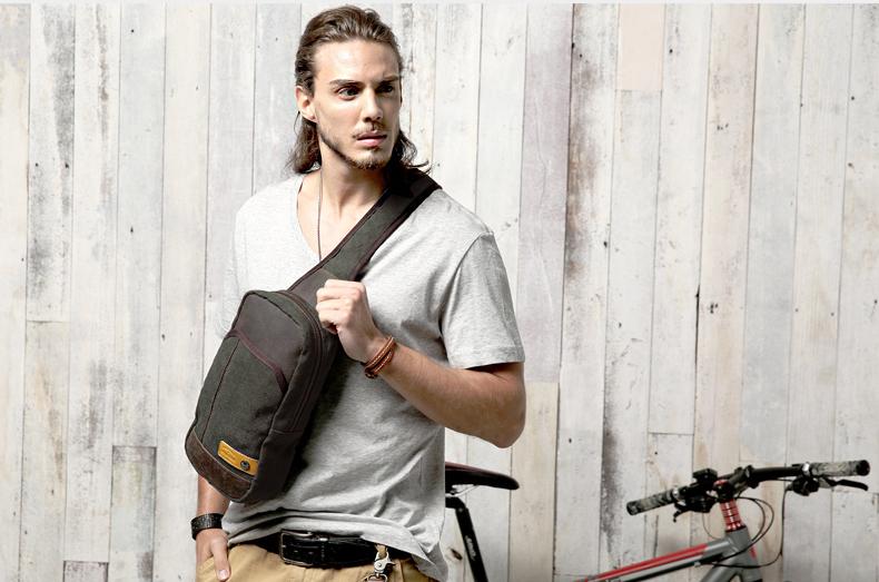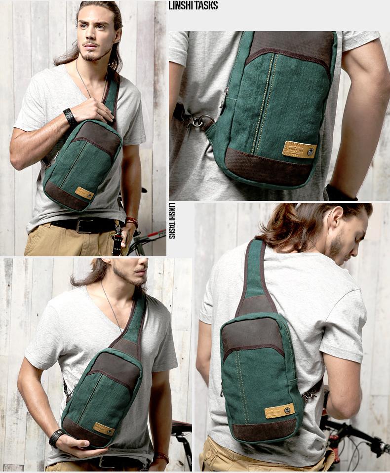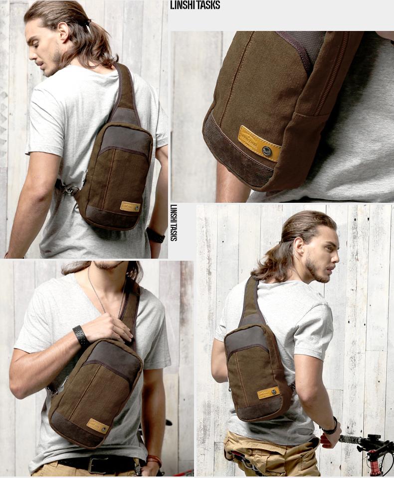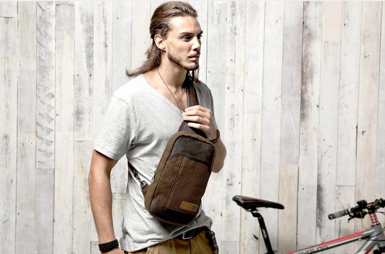 Style: Green Canvas Sling Backpack Men's Sling Bag Coffee Chest Bag Canvas One shoulder Backpack For Men