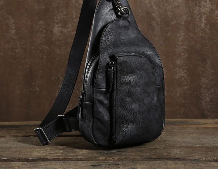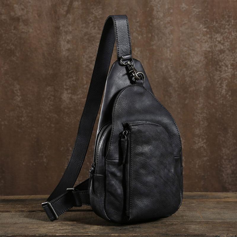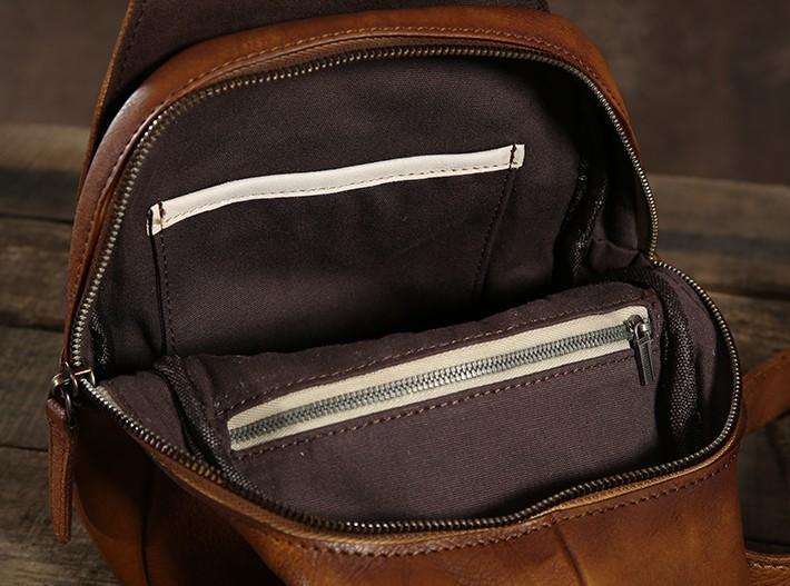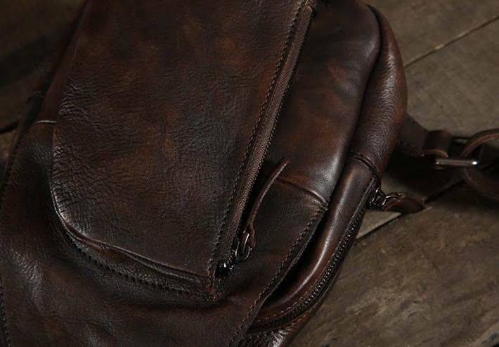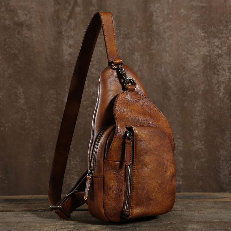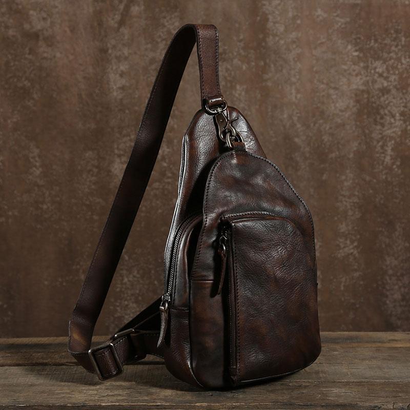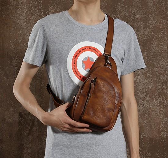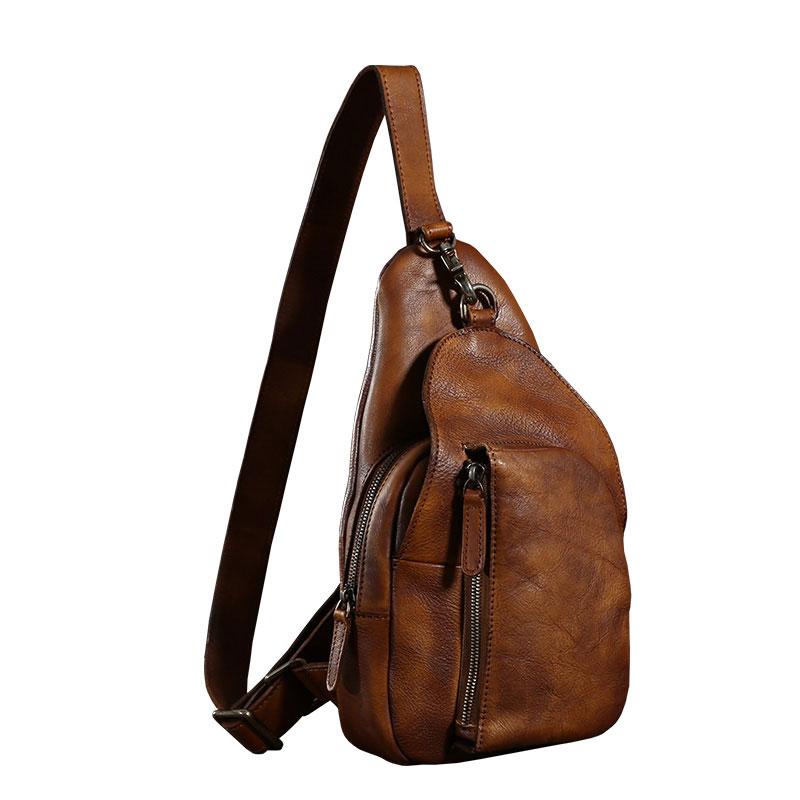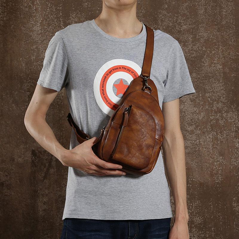 Style: Handmade Leather Mens Cool Chest Bag Sling Bag Crossbody Bag Travel Bag Hiking Bag for men