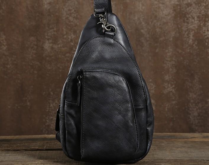 Design: Handmade Leather Mens Cool Chest Bag Sling Bag Crossbody Bag Travel Bag Hiking Bag for men
