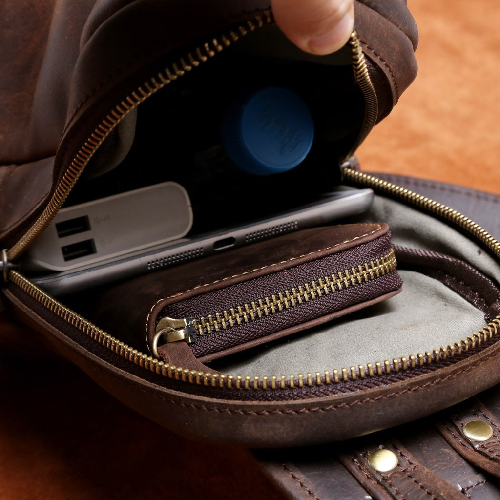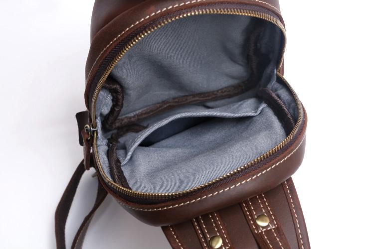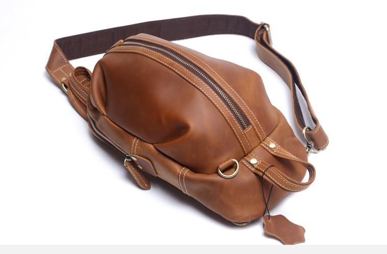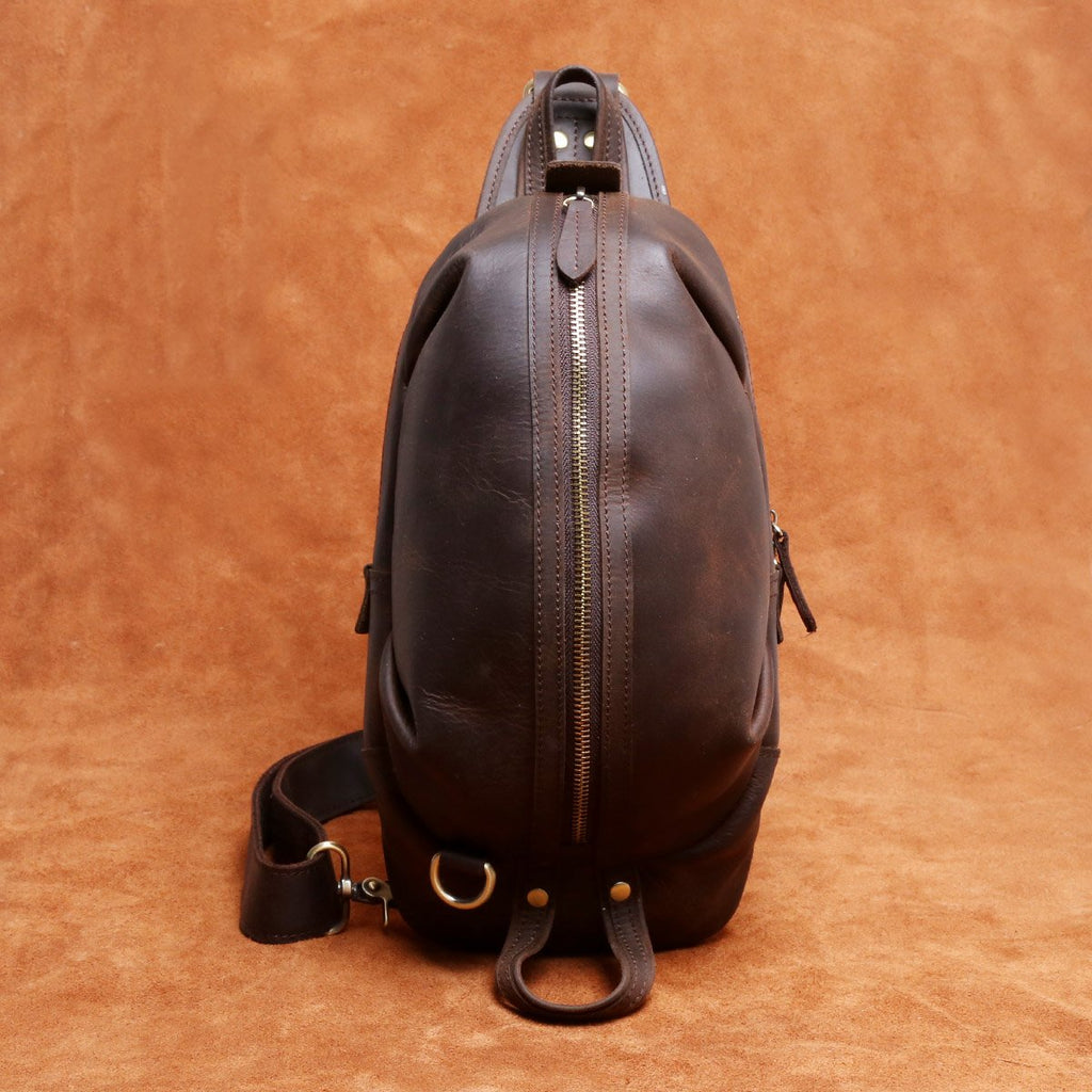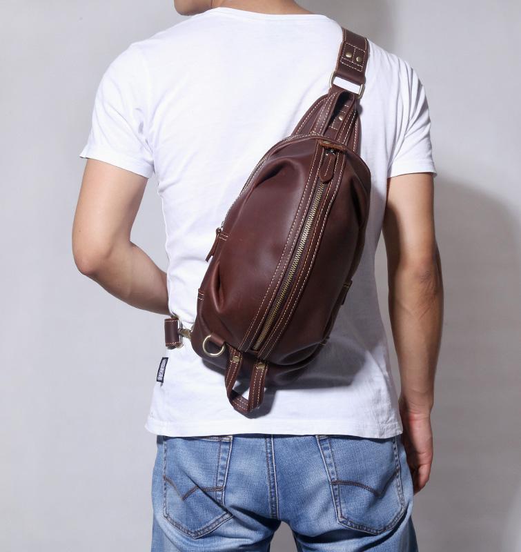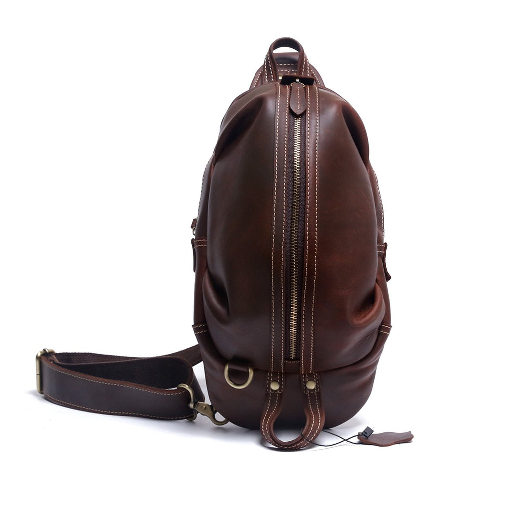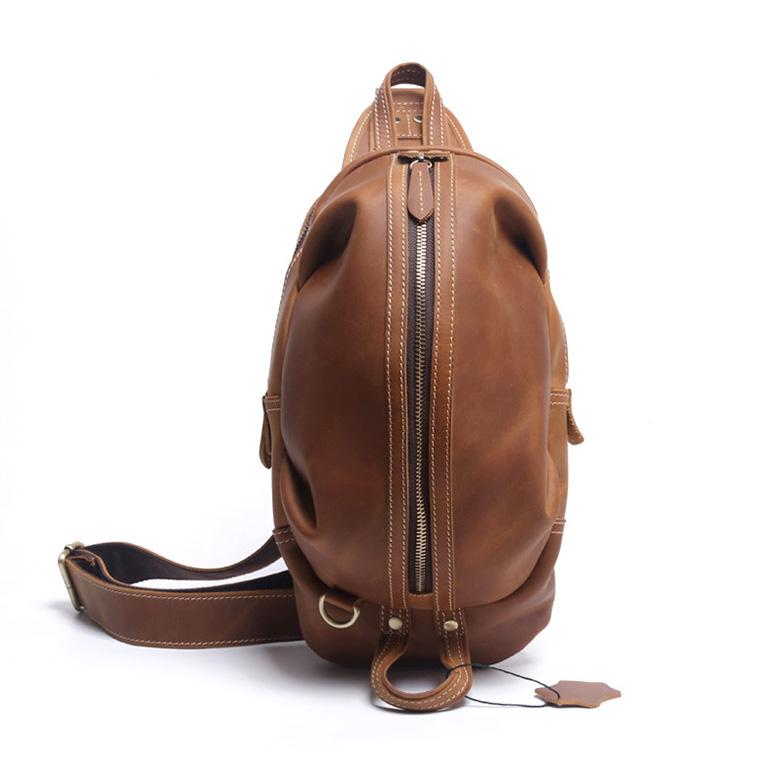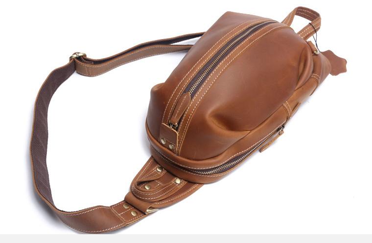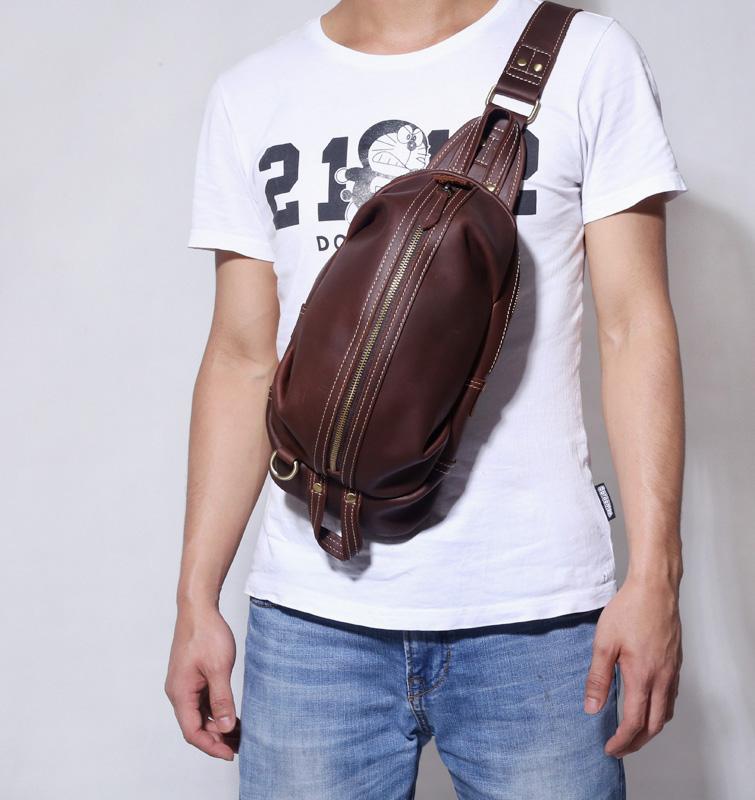 Style: Handmade Leather Mens Cool Chest Bag Sling Bag Crossbody Bag Travel Bag Hiking Bag for men