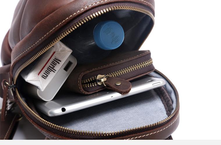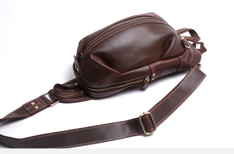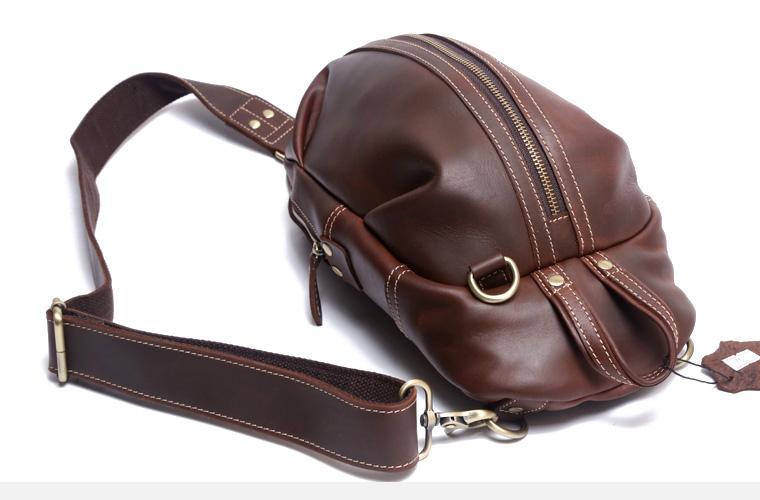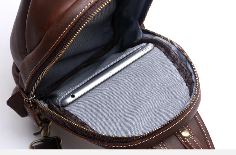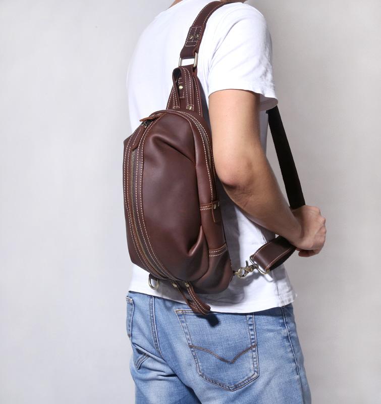 Design: Handmade Leather Mens Cool Chest Bag Sling Bag Crossbody Bag Travel Bag Hiking Bag for men