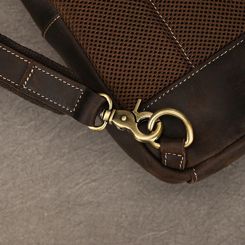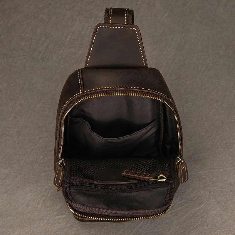 Leather Chest Bag | Vintage Crazy Horse Leather Chest Sling for Men