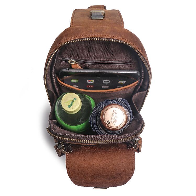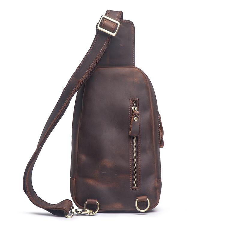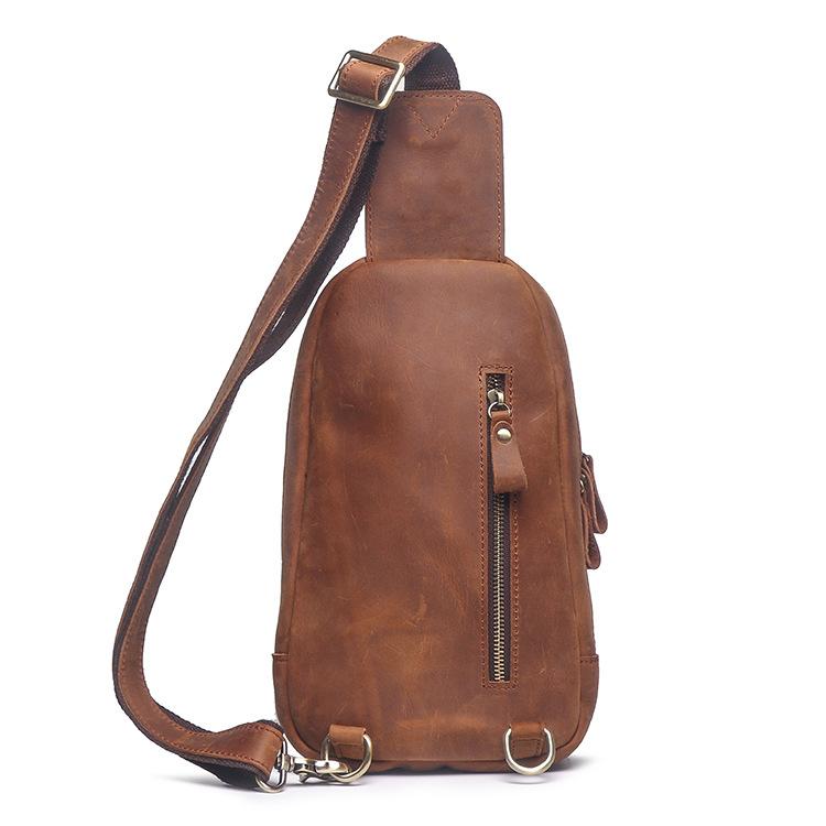 Design: Cool Brown Leather Men's Sling Bag Chest Bag One-Shoulder Backpack For Men