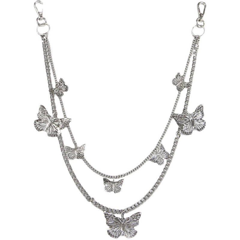 Style: Fashion Womens Butterfly Jeans Chain Silver Double Layers Butterfly Wallet Chains Panties Chains For Men