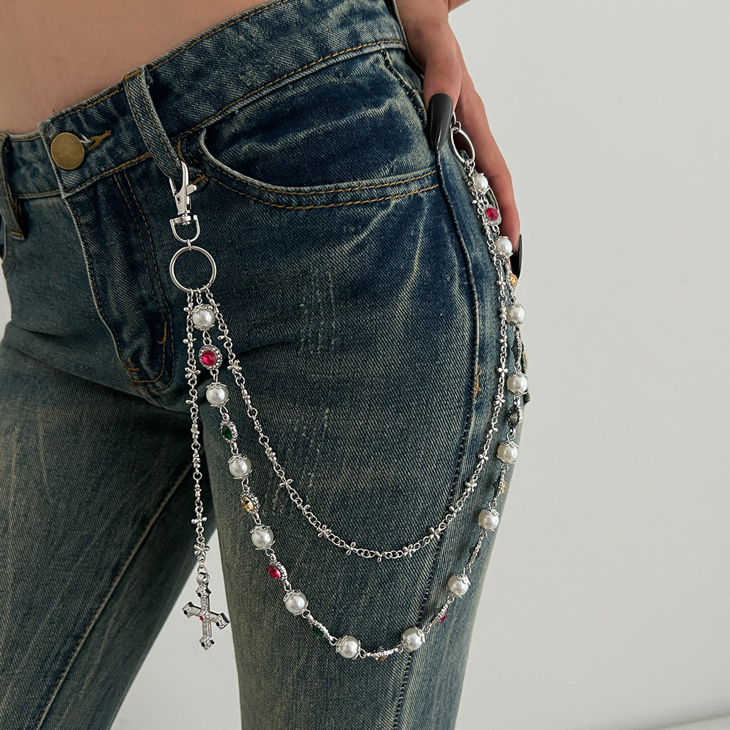 Crafted for fashion-forward individuals, this elegant Pearl Wallet Chain masterfully balances classic pearl aesthetics with contemporary floral detailing. The outer strand’s pearl-and-gem arrangement creates a captivating visual rhythm, while the inner floral chain adds a subtle, feminine touch. Lightweight and comfortable for all-day wear, this piece serves as the perfect introduction to wallet chains for beginners, while its sophisticated design will also appeal to seasoned accessory enthusiasts.