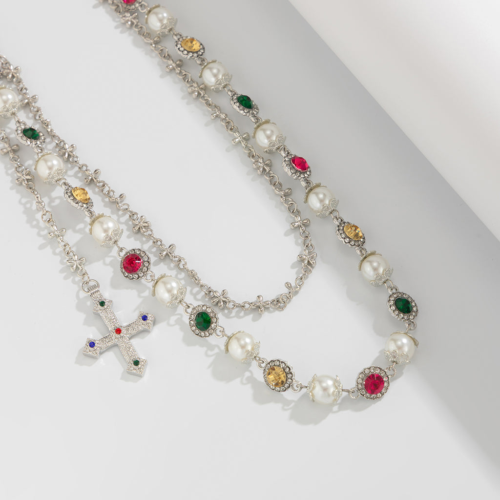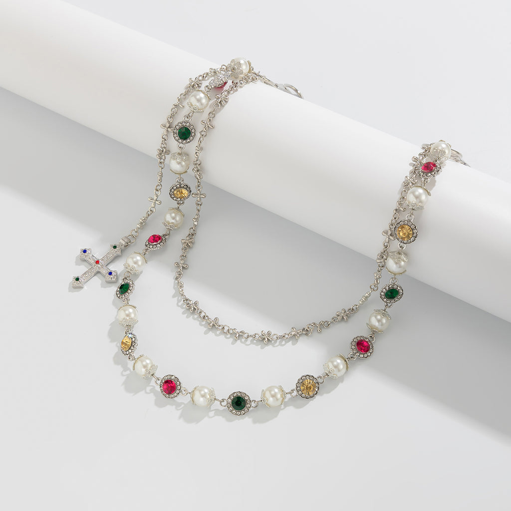 Outer Layer:57cm strand of high-quality faux pearls with simulated gemstone accents