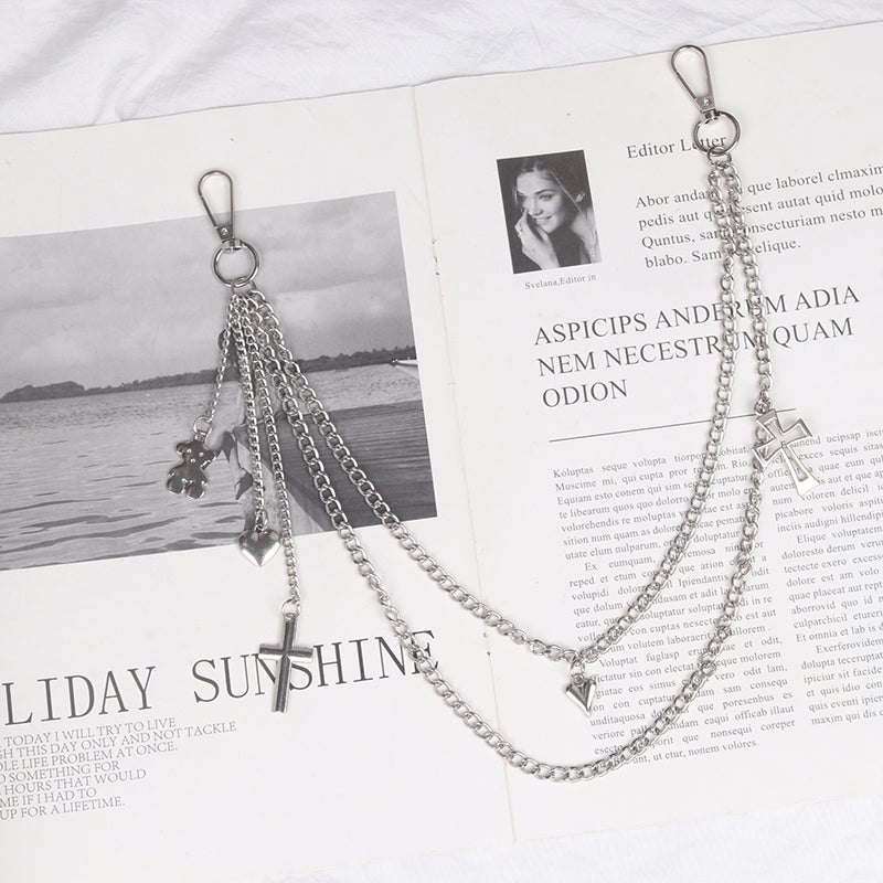Style: Womens Jeans Chains Silver Double Layers With Bear&Cross&Heart Charms Cute Pants Chain For Women
