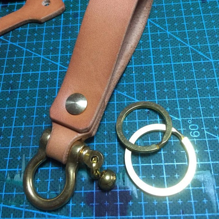 Style: Biker Leather Brass Keyring Moto KeyChain Beige Leather Keyring Moto Cross Key Holders Key Chain Key Ring for Men