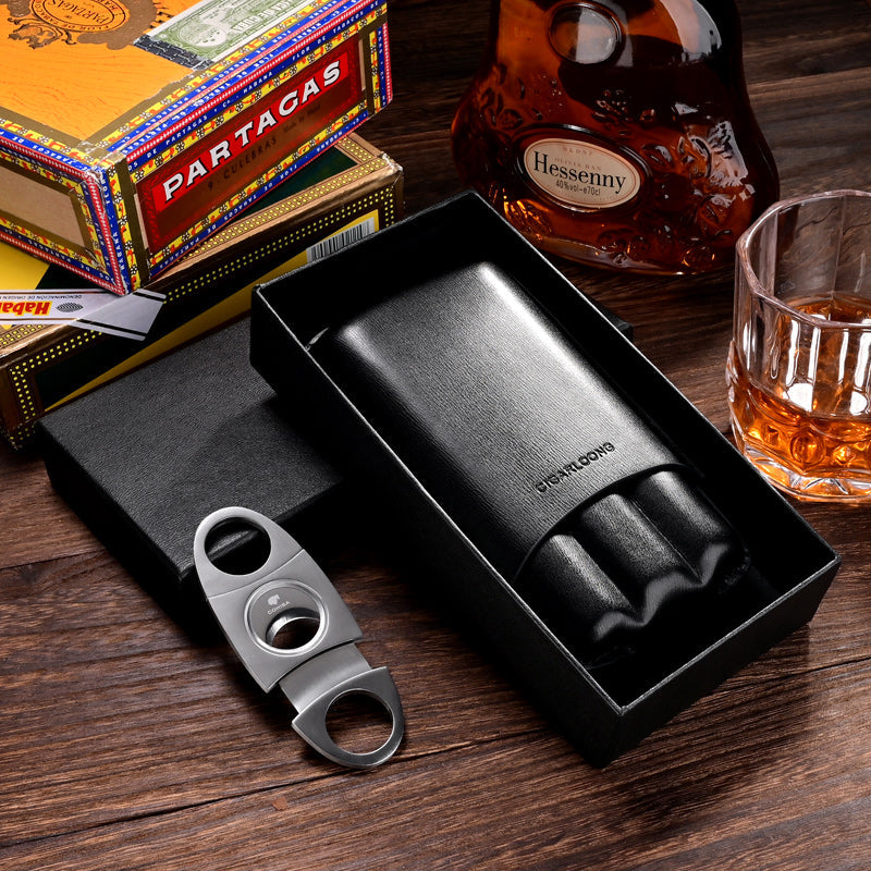 Style: Cool Leather Mens 3pcs Cigar Case With Cutter Leather Cigar Case for Men