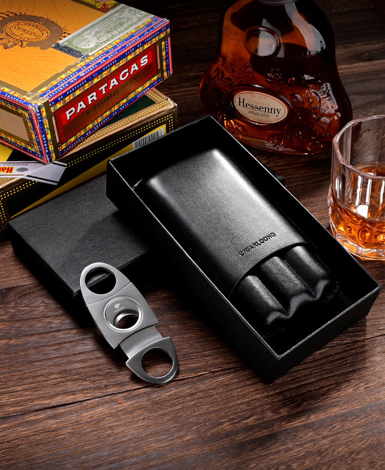 Design: Cool Leather Mens 3pcs Cigar Case With Cutter Leather Cigar Case for Men