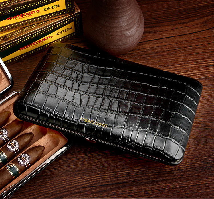 Design: Best Leather&Cedar Mens 4pcs Cigar Cases Alligator Pattern Leather Cigar Cases for Men