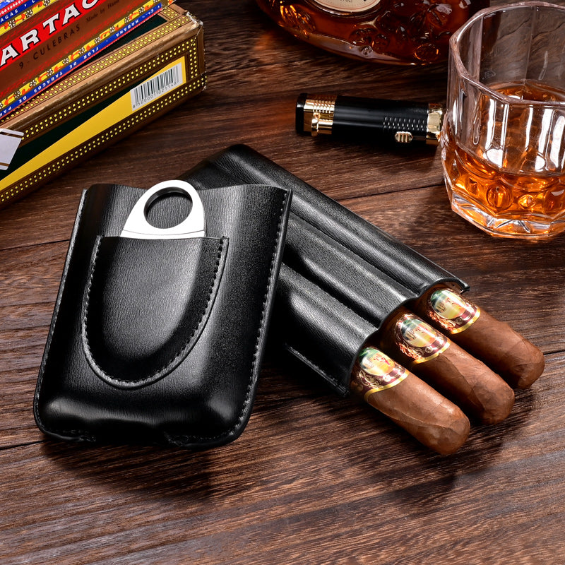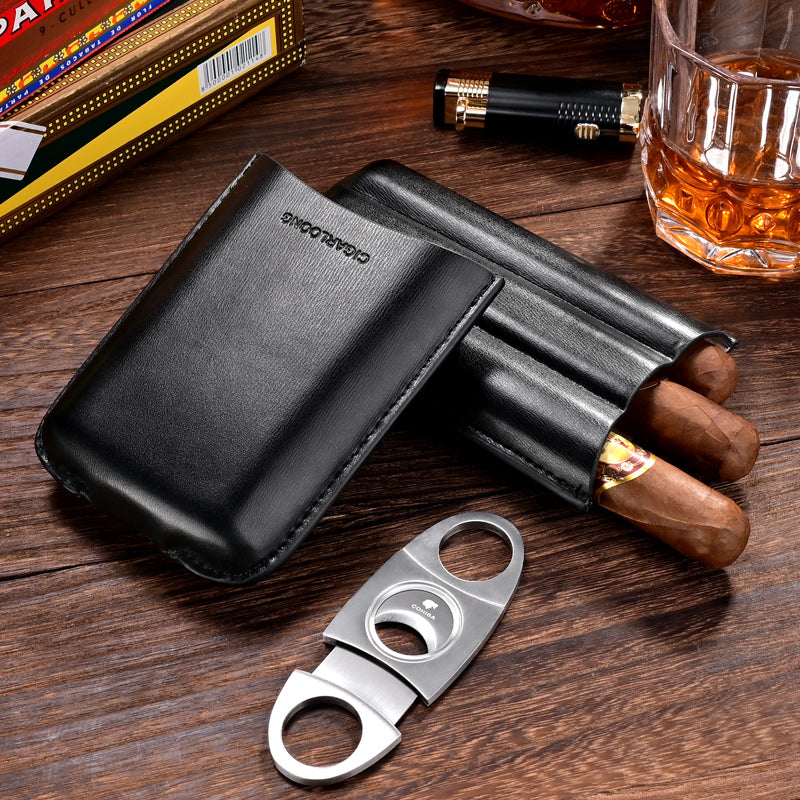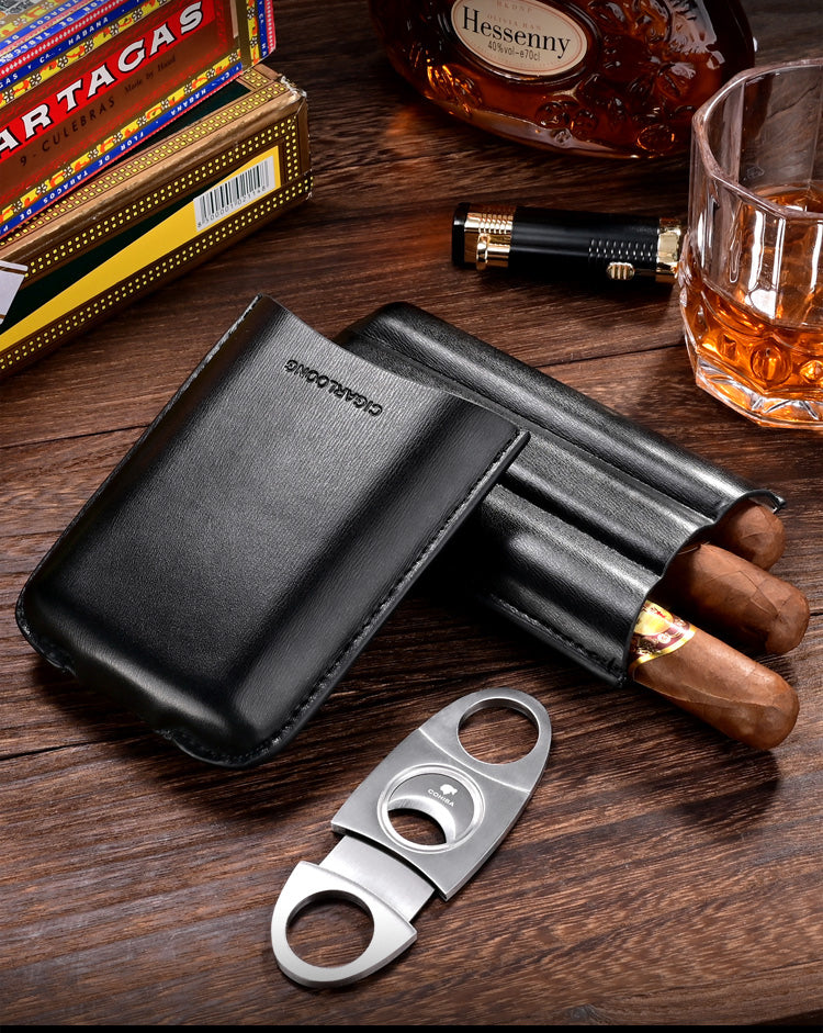 Design: Cool Leather Mens 3pcs Cigar Case With Cutter Leather Cigar Case for Men