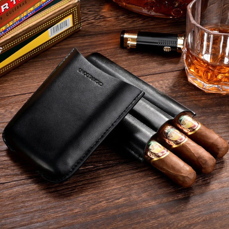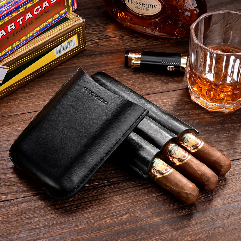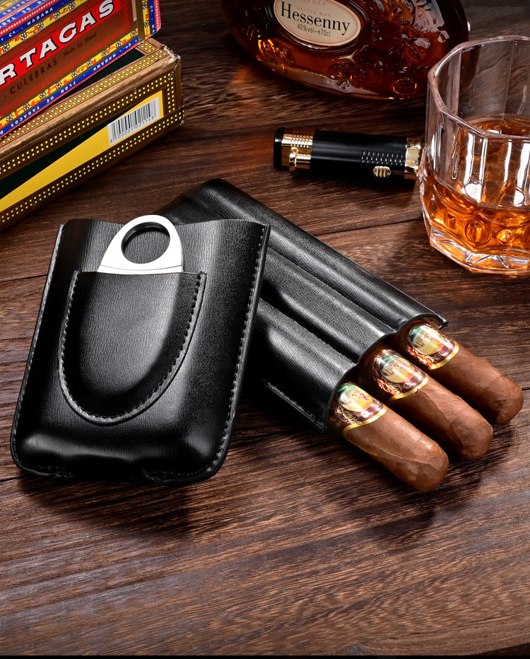 Style: Cool Leather Mens 3pcs Cigar Case With Cutter Leather Cigar Case for Men