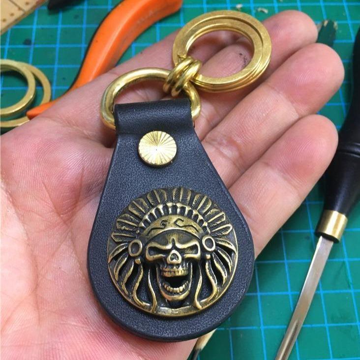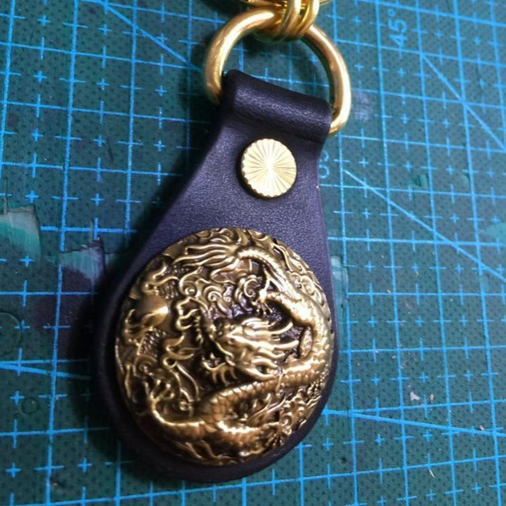 Design: Black Biker Leather Brass Keyring Moto KeyChain Dragon Leather Keyring Moto Cross Key Holders Key Chain Key Ring for Men