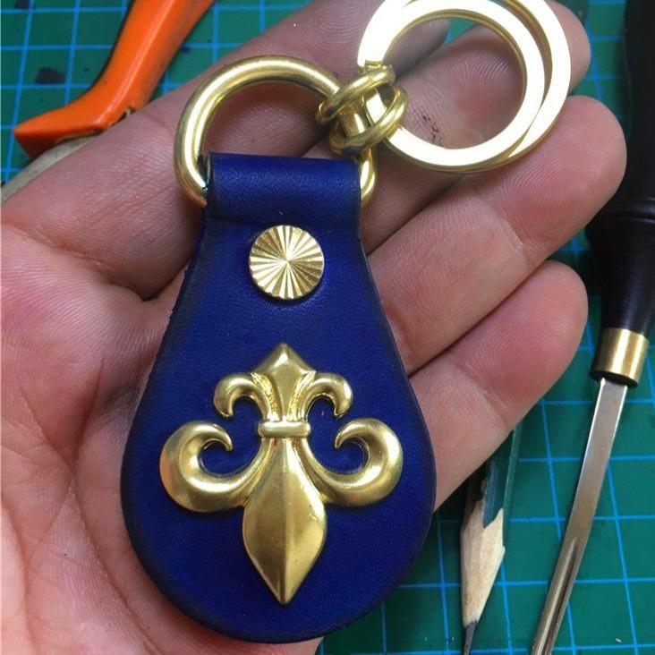 Style: Black Biker Leather Brass Keyring Moto KeyChain Skull Leather Keyring Moto Cross Key Holders Key Chain Key Ring for Men