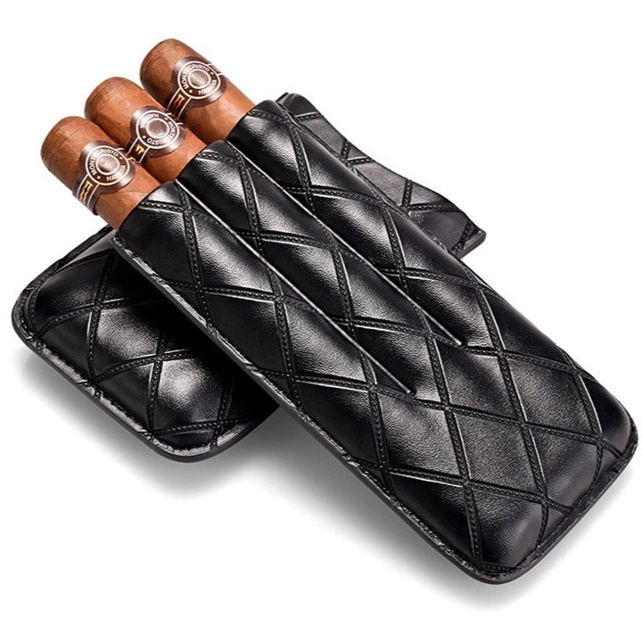 Style: Cool Leather Mens 3pcs Cigar Case With Cutter Leather Cigar Case for Men