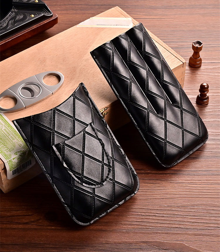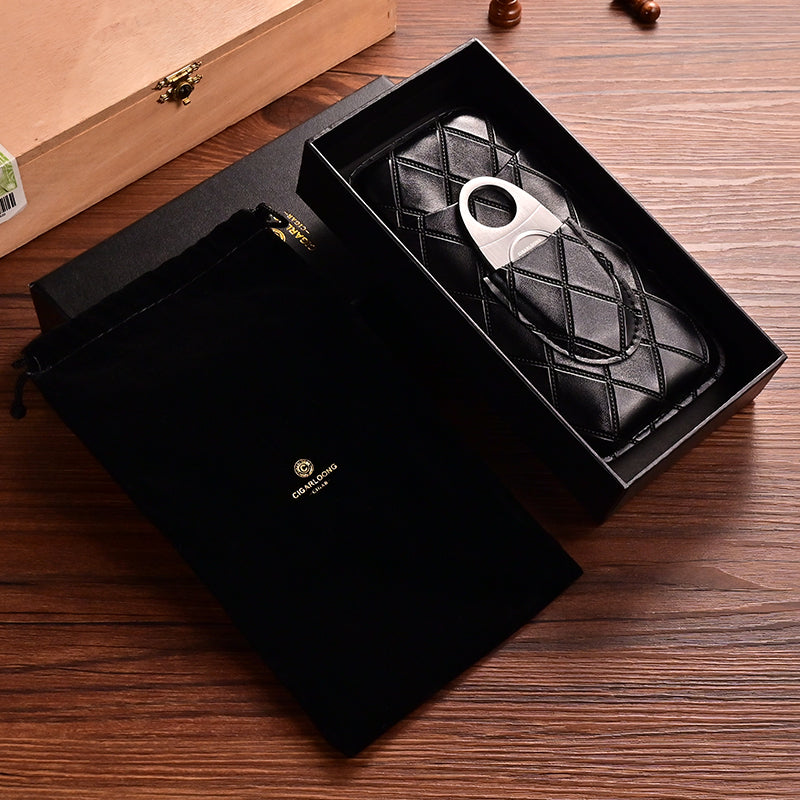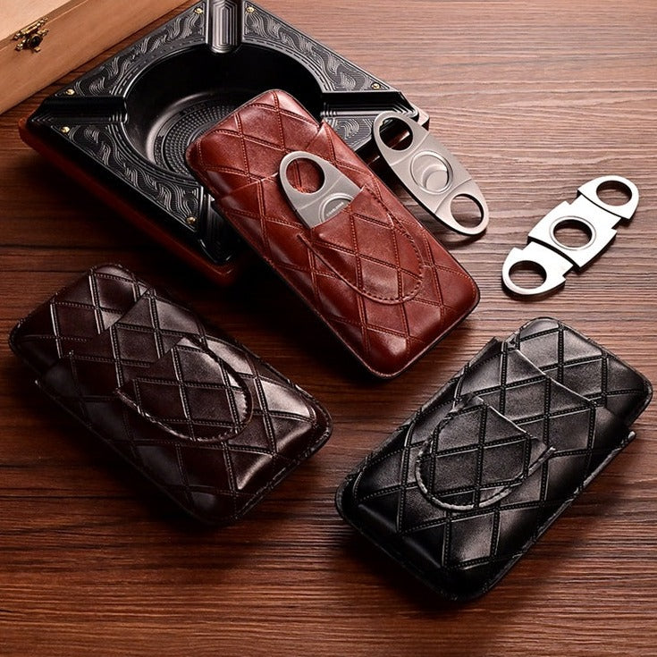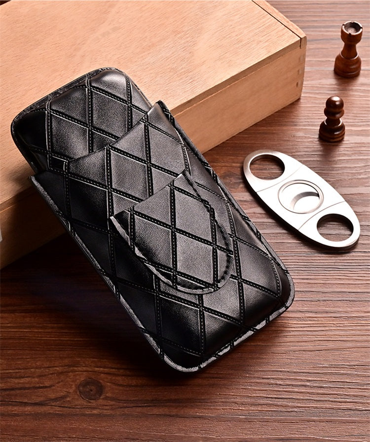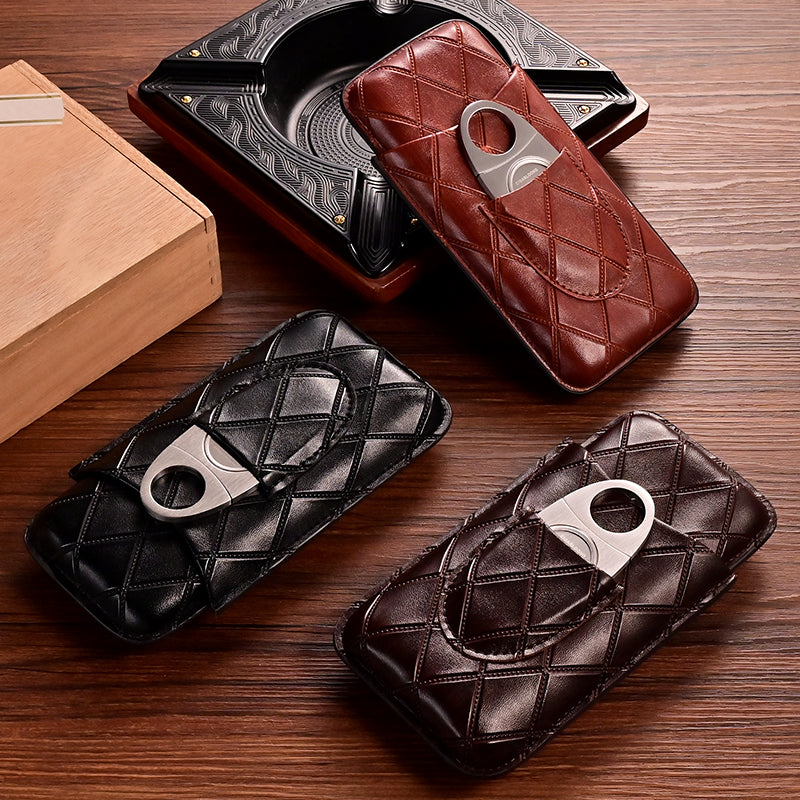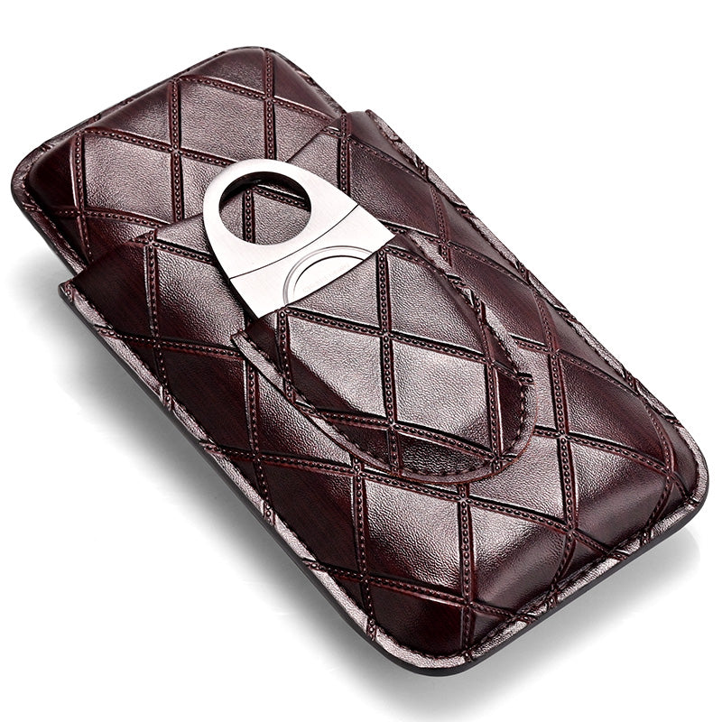 Design: Cool Leather Mens 3pcs Cigar Case With Cutter Leather Cigar Case for Men