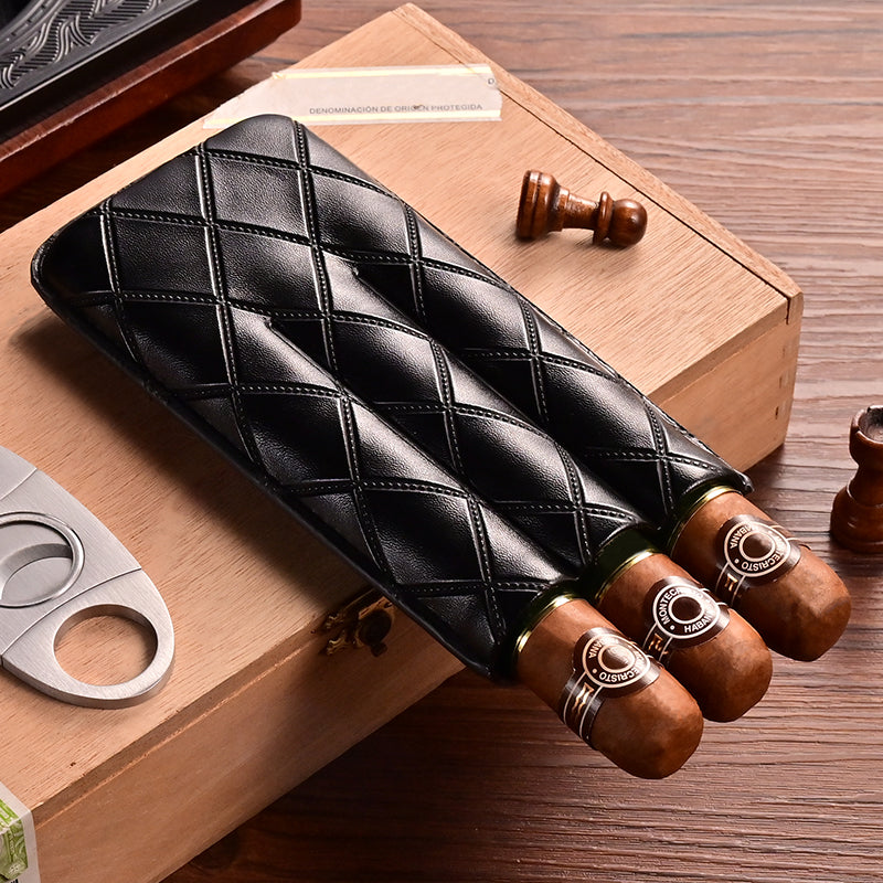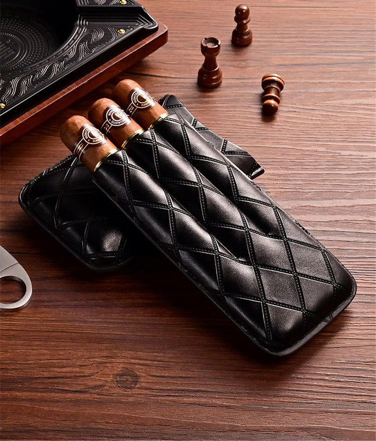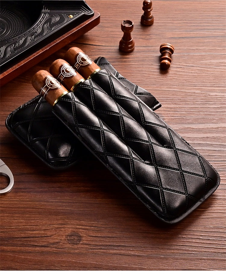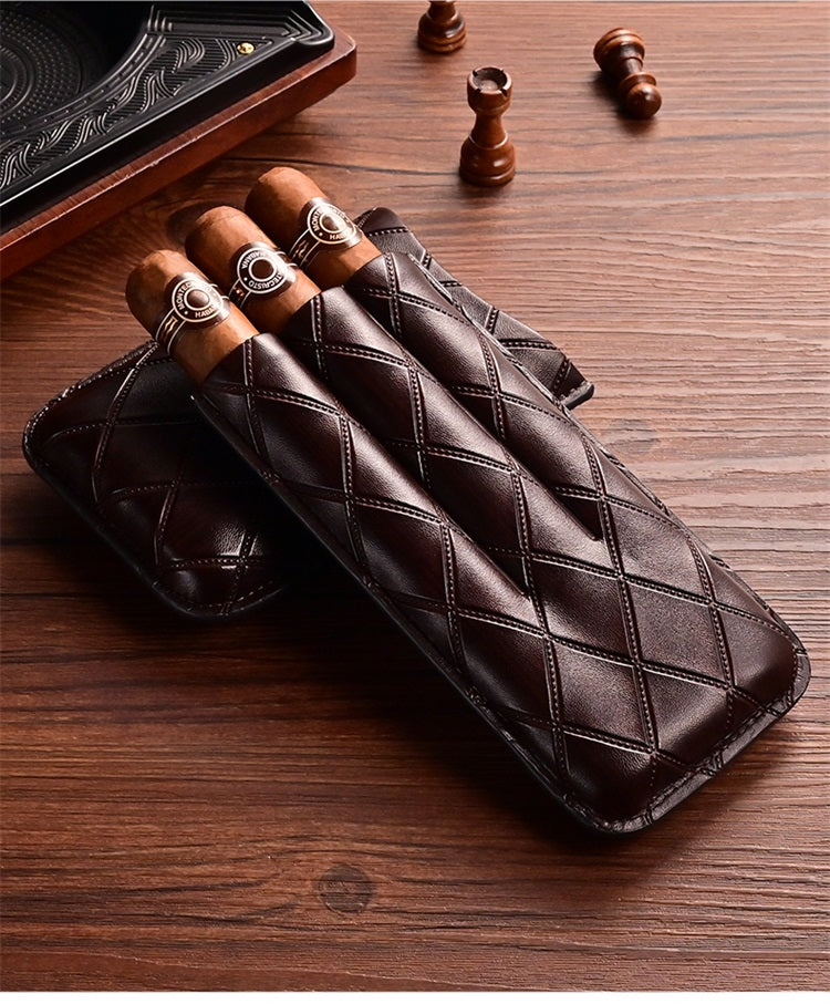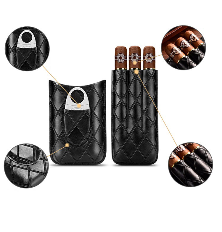 Design: Cool Leather Mens 3pcs Cigar Case With Cutter Leather Cigar Case for Men