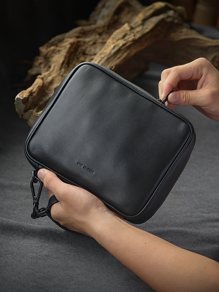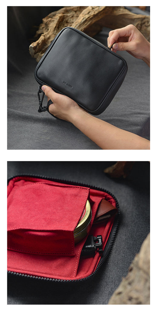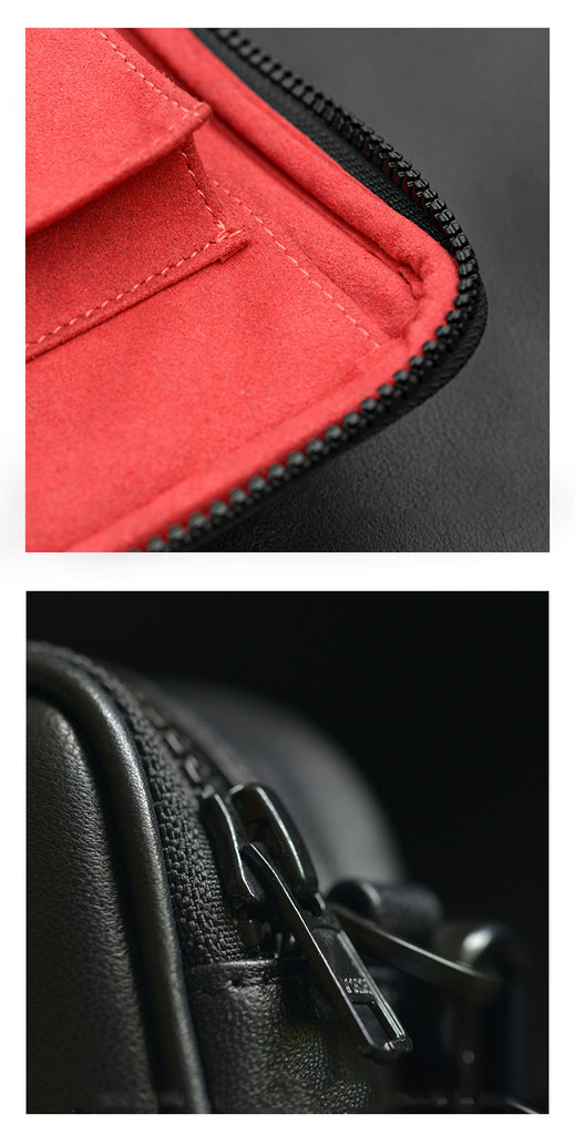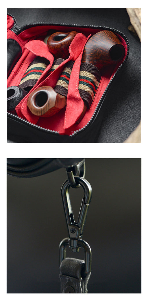 Design: Cool Leather Black Mens Leather 4pcs Tobacco Pipe Case Zipper Tobacco Pipe Case for Men