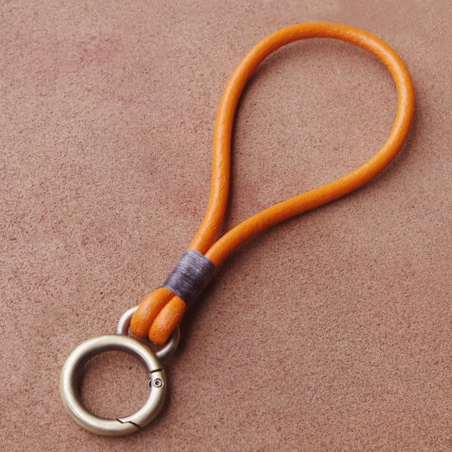 Style: Blue Leather Lanyards for Id Badge Handmade Leather Keychain Key Ring for Men
