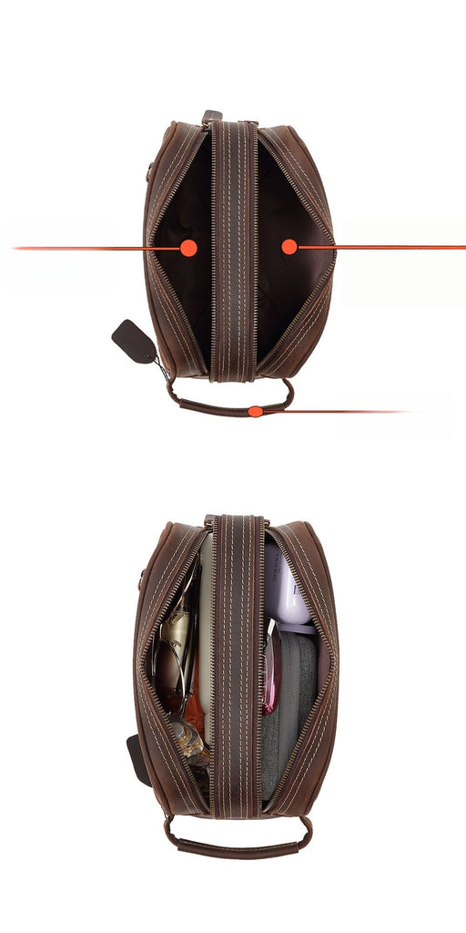 Style: Brown Leather Men's Toiletry Bag Leather Roomy Dopp Kit Clutch Wash Kit