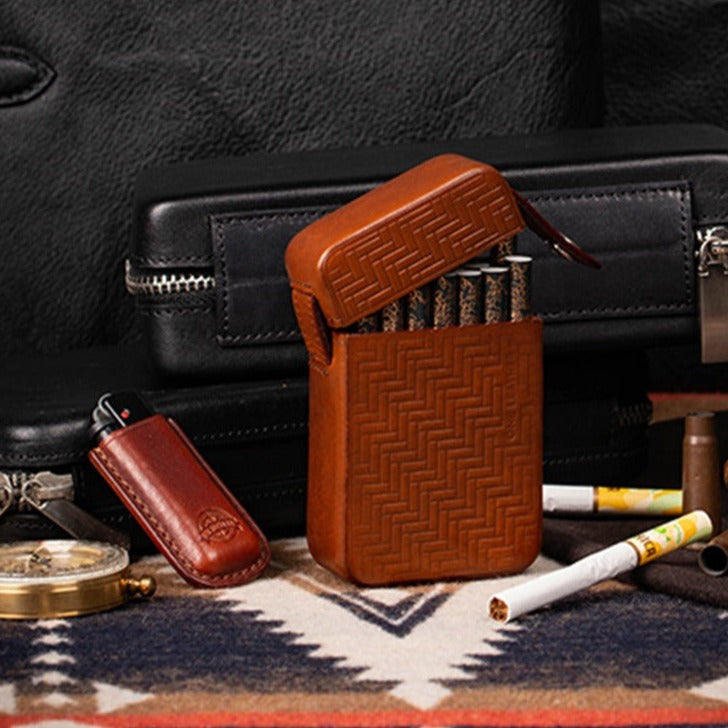 Style: Classic Brown Leather Mens 20pcs Cigarette Holder Case Stamped Cigarette Case for Men