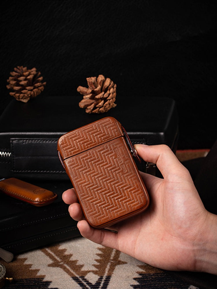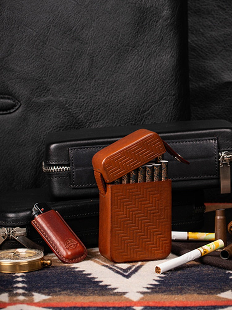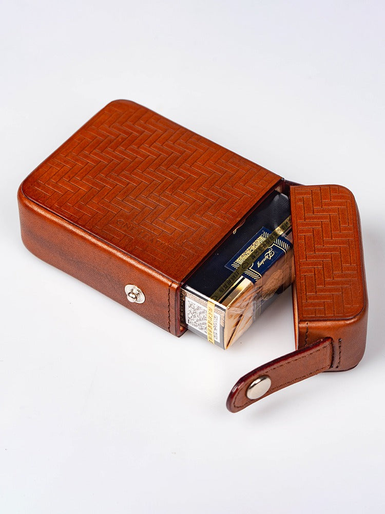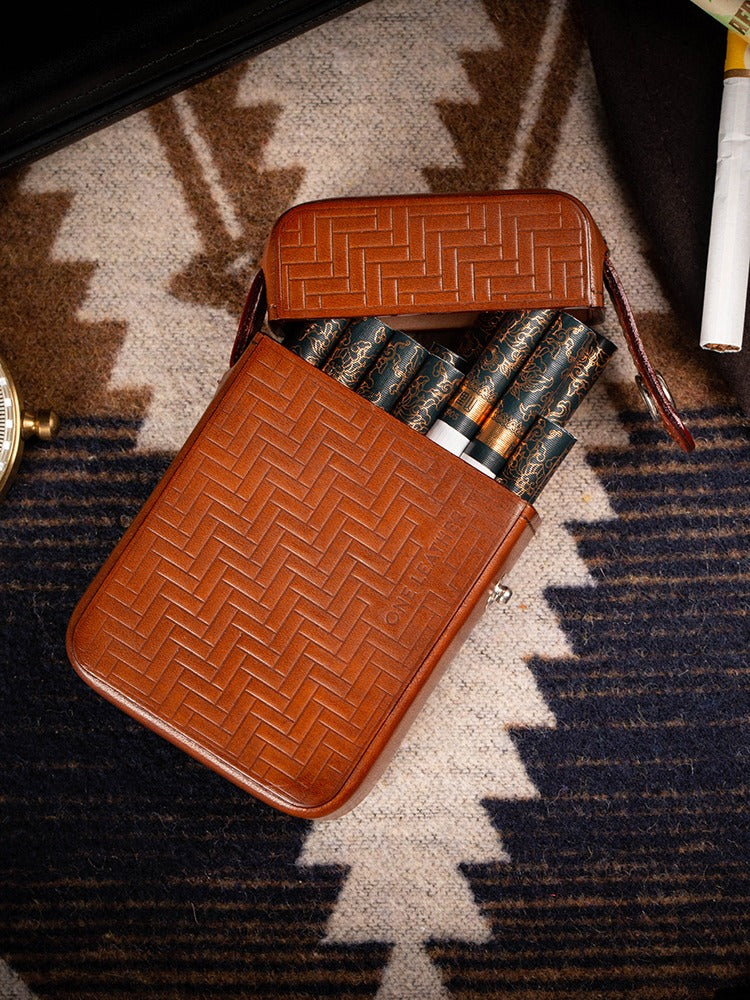 Design: Classic Brown Leather Mens 20pcs Cigarette Holder Case Stamped Cigarette Case for Men