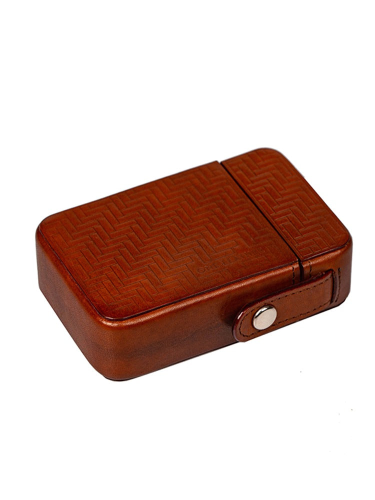 Classic Brown Leather Mens 20pcs Cigarette Holder Case Stamped Cigarette Case for Men