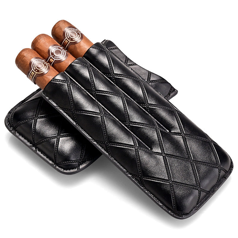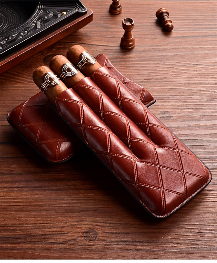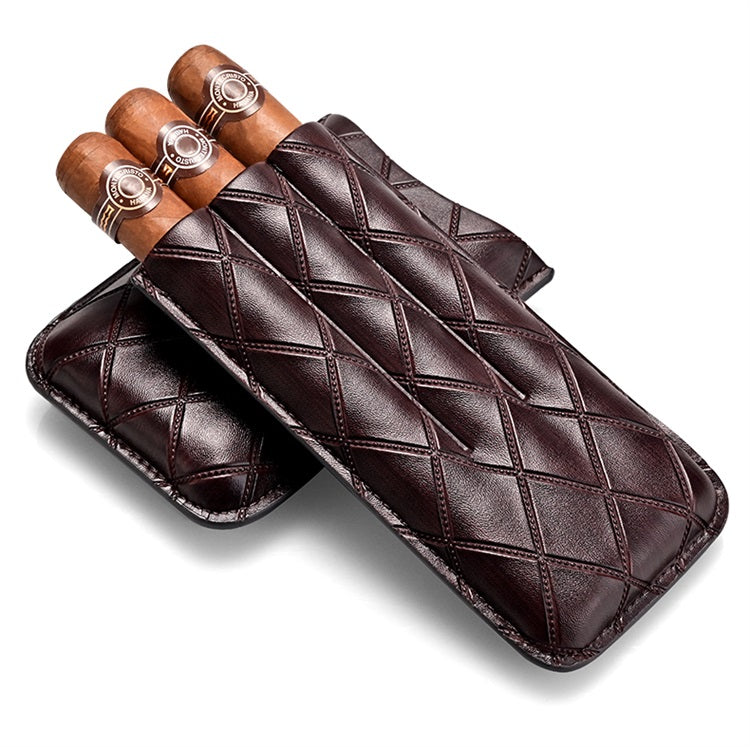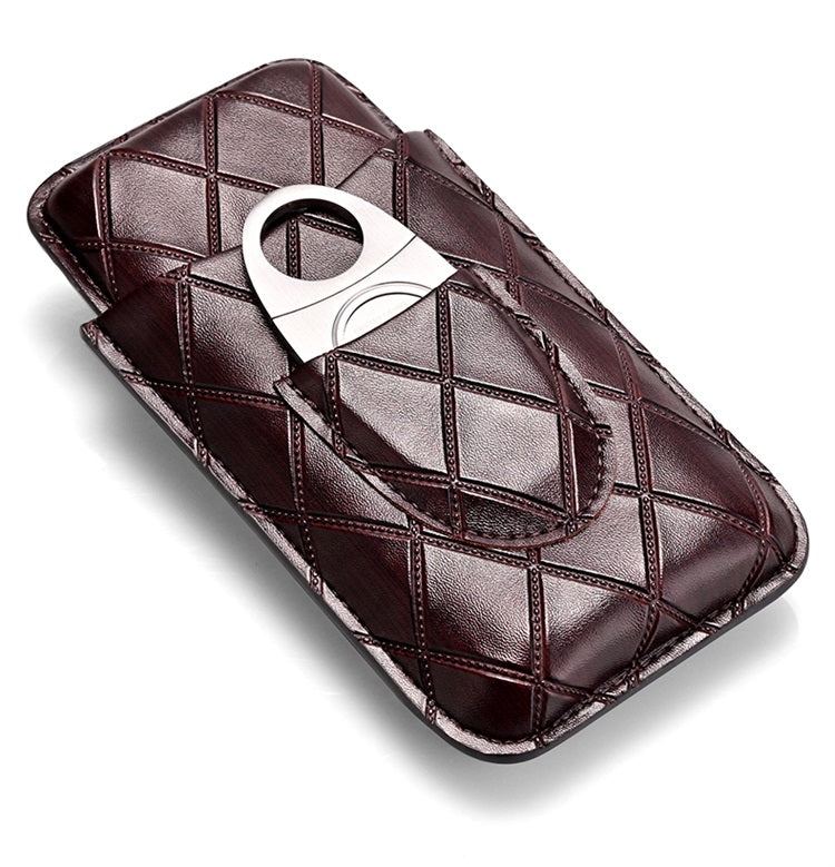 Coffee Diamond Leather Mens 3pcs Cigar Case With Cutter Leather Cigar Cases for Men