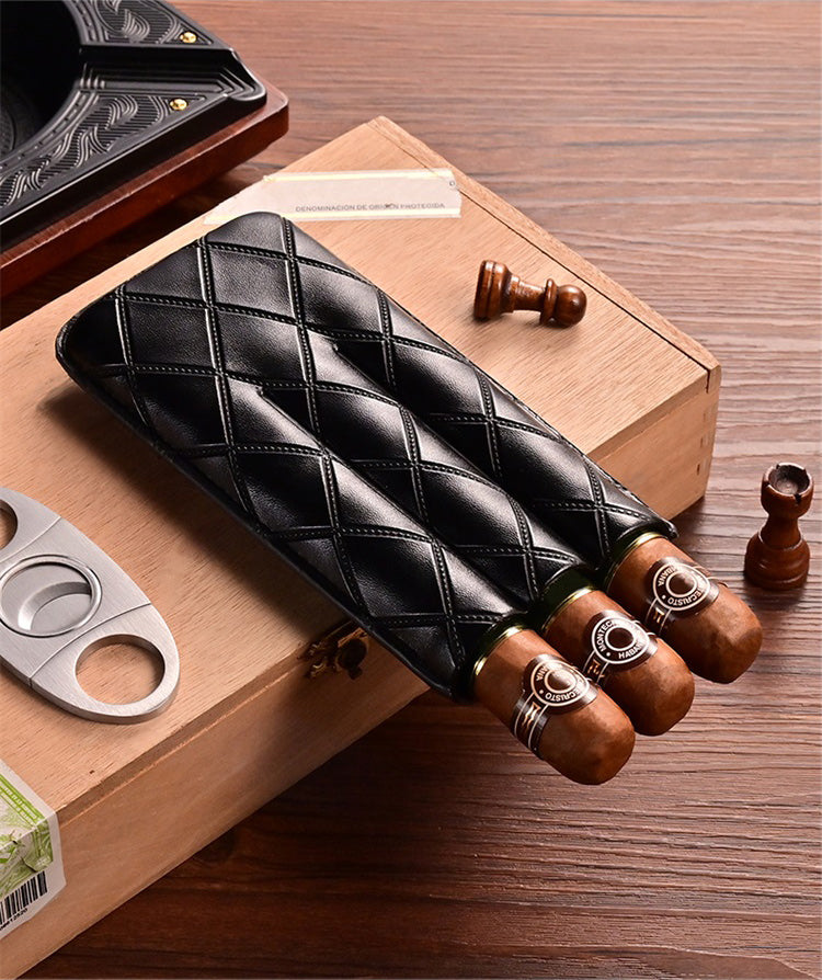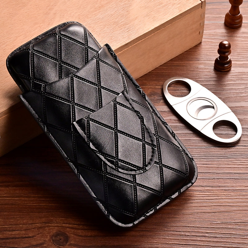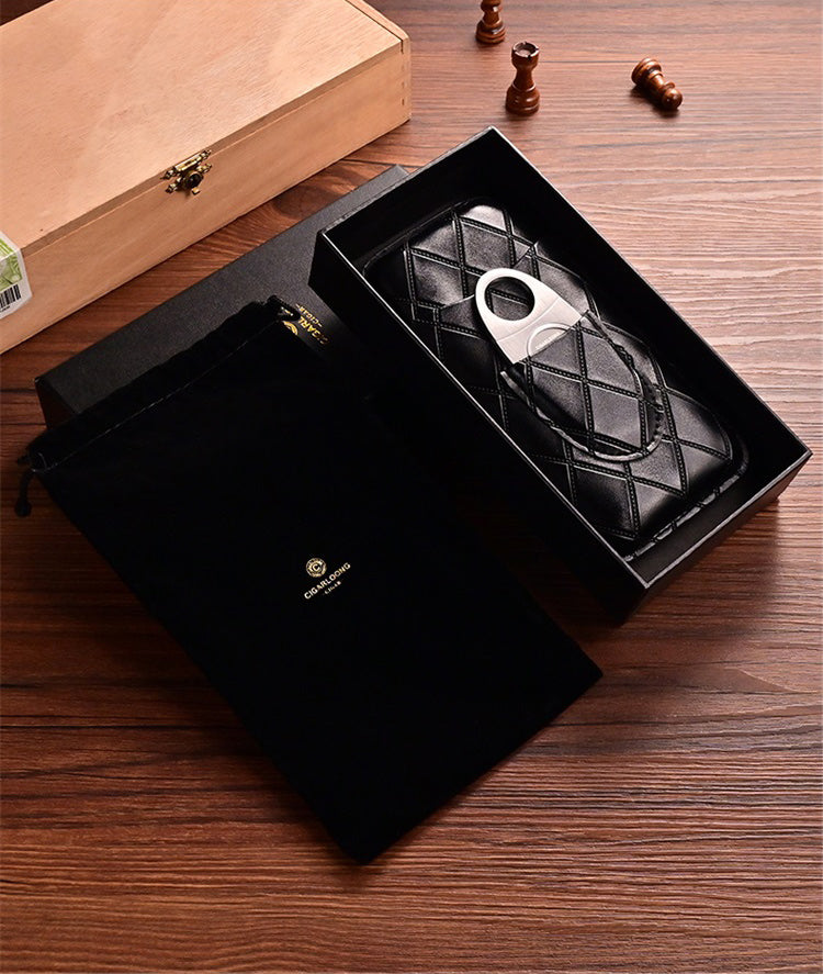 Design: Cool Leather Mens 3pcs Cigar Case With Cutter Leather Cigar Case for Men