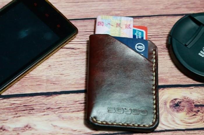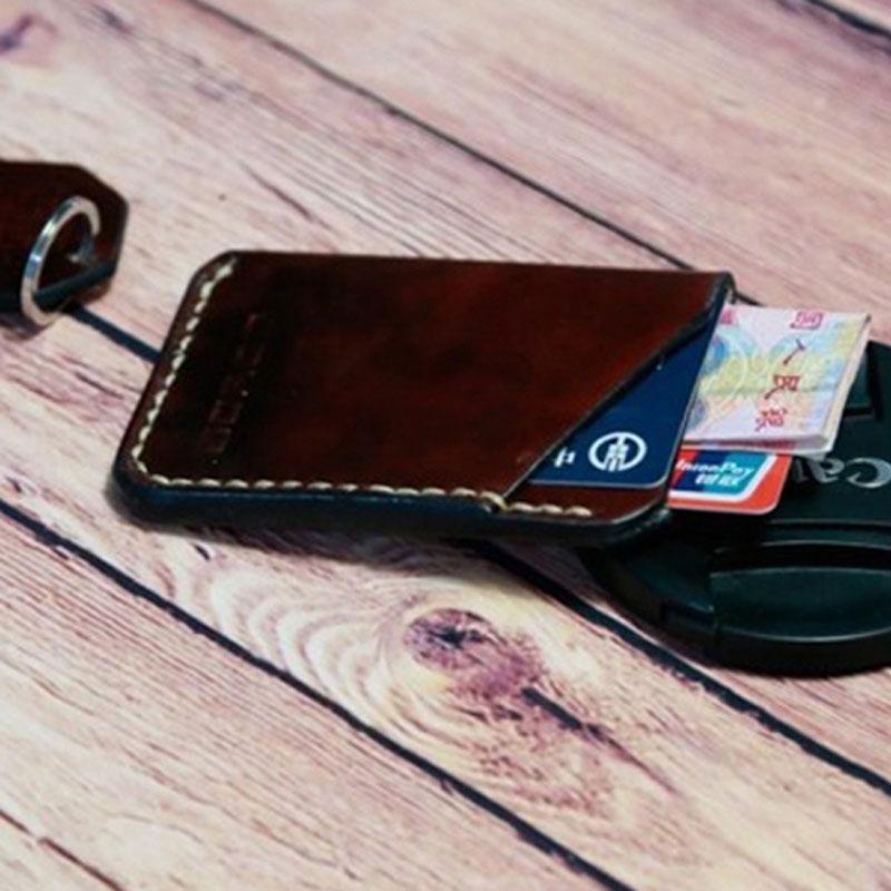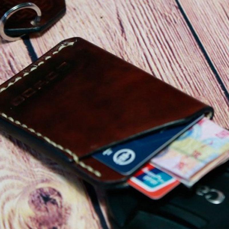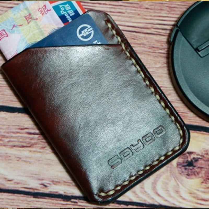 Design: Coffee Leather Mens Slim Front Pocket Wallets Leather Card Wallet for Men