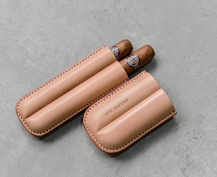 Design: Cool Beige Leather Mens 2pcs Cigar Case Cool Custom Leather Cigar Case for Men