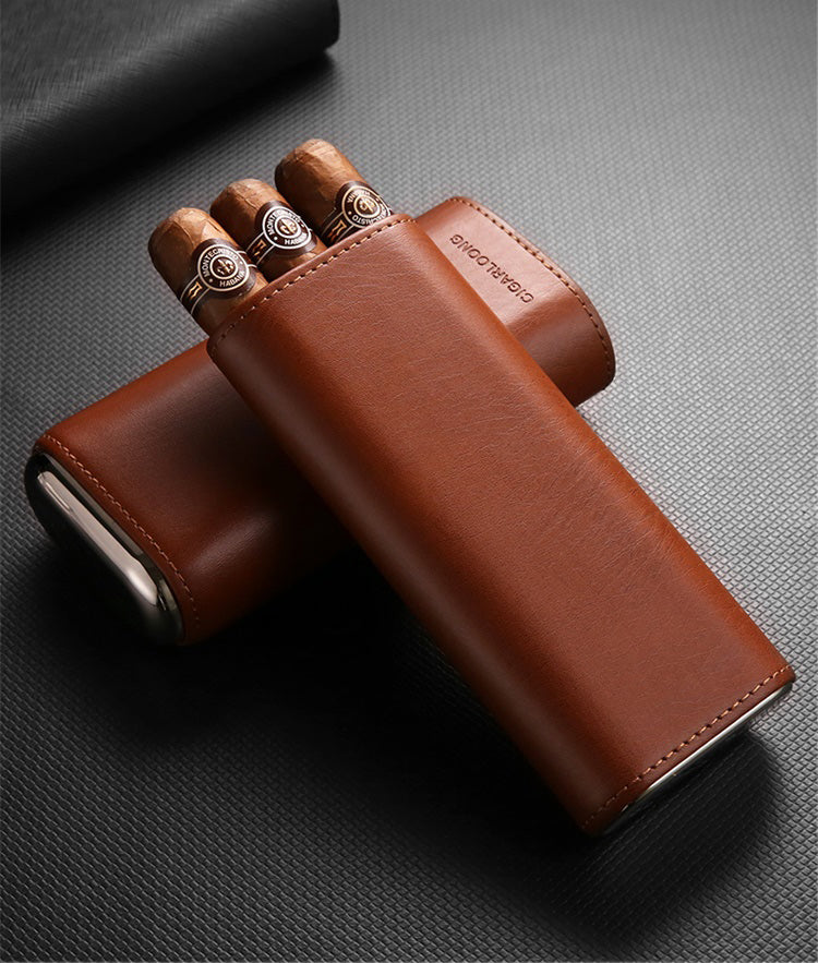 Style: Cool Black Leather Mens 3pcs Cigar Case With Cutter Leather Cigar Case for Men