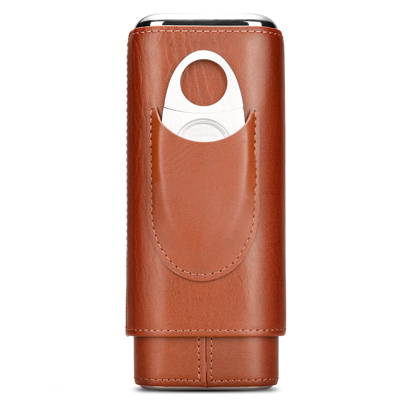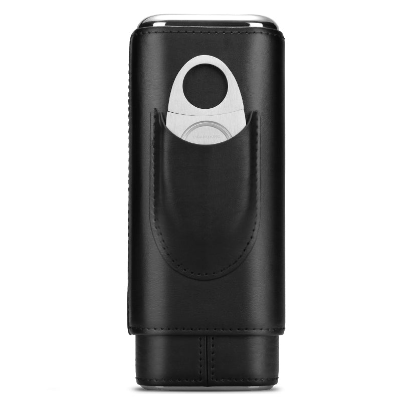 Design: Cool Black Leather Mens 3pcs Cigar Case With Cutter Leather Cigar Case for Men