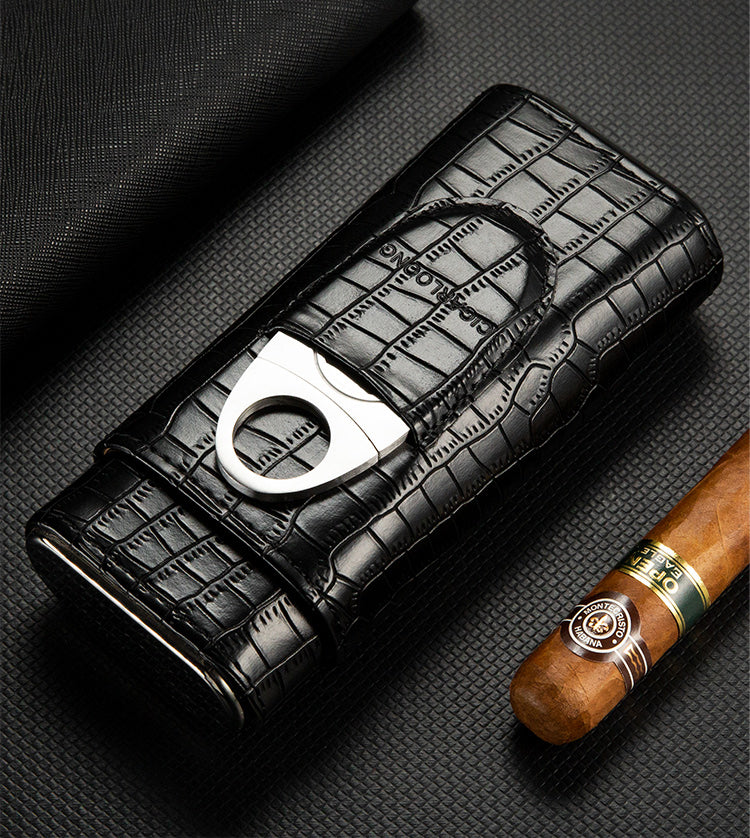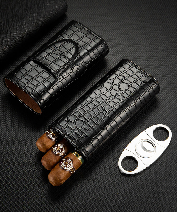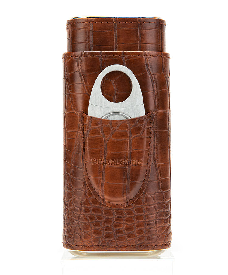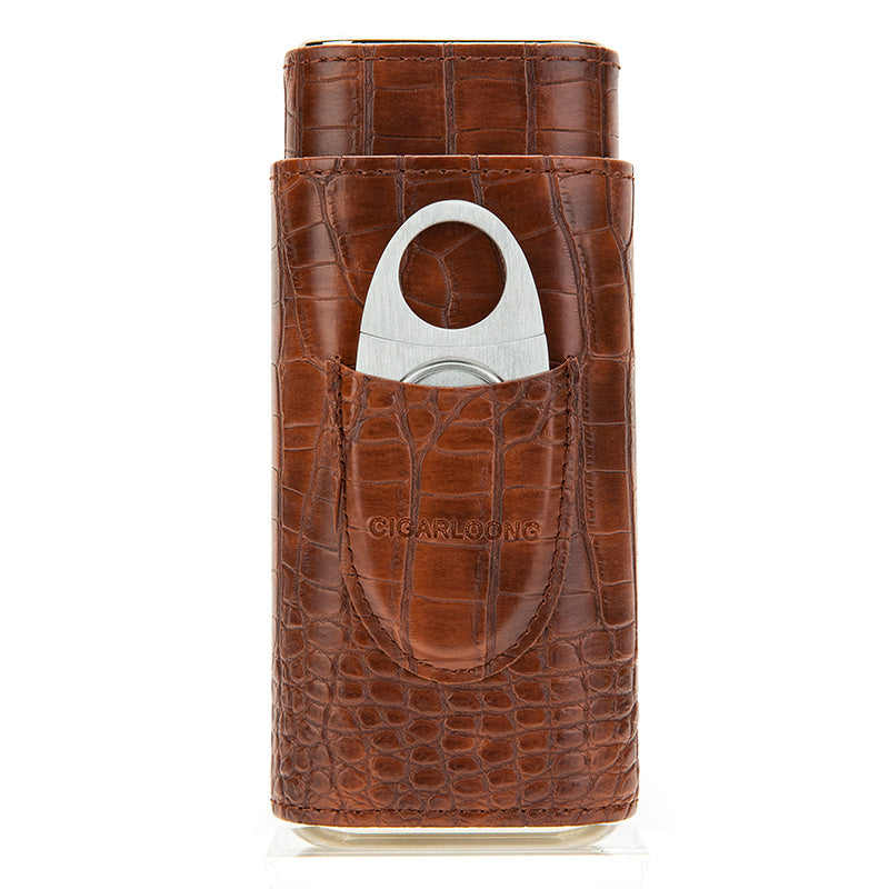 Design: Cool Brown Leather Mens 3pcs Cigar Case With Humidor Cutter Crocodile Pattern Leather Cigar Case for Men