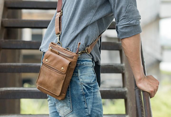 Style: Leather Belt Pouch Phone Case Mens Waist Bag Shoulder Bag for Men