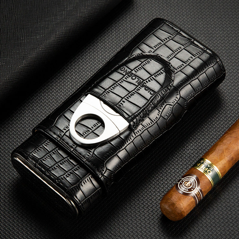 Cool Leather Mens 3pcs Cigar Case With Humidor Cutter Crocodile Pattern Leather Cigar Case for Men