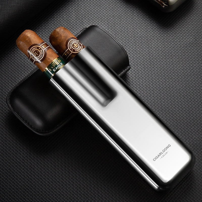 Style: Cool Leather Stainless Steel Mens 2pcs Cigar Case Leather Cigar Case for Men