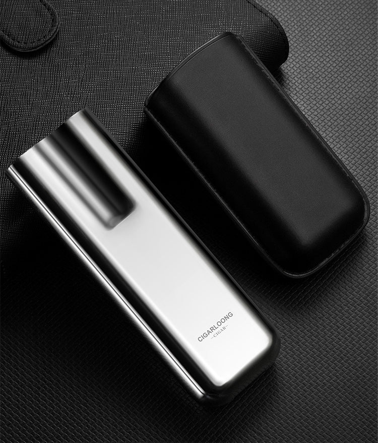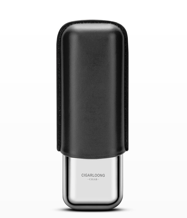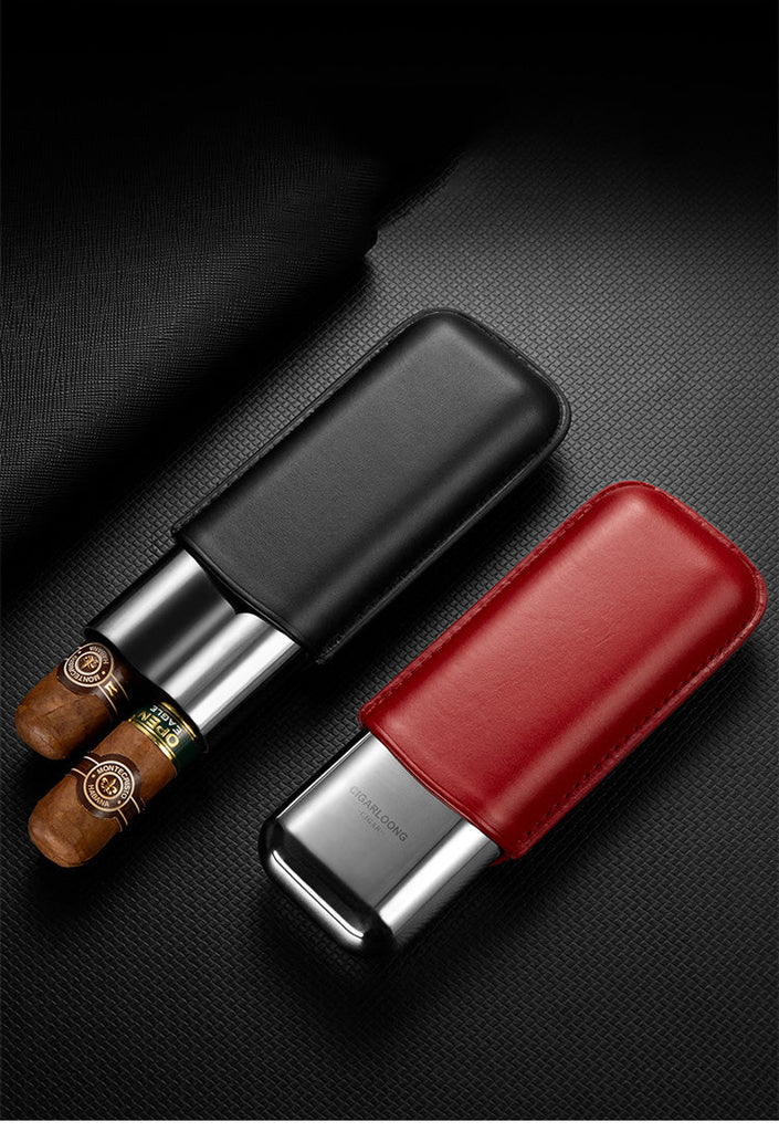 Design: Cool Leather Stainless Steel Mens 2pcs Cigar Case Leather Cigar Case for Men