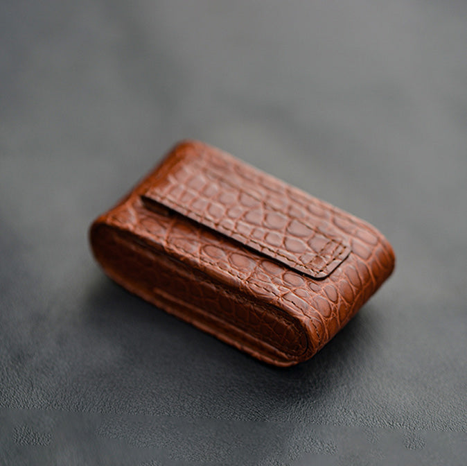 Crocodile Leather Mens Cartier Lighter Cases With Belt Loop Brown Lighter Holder For Men
