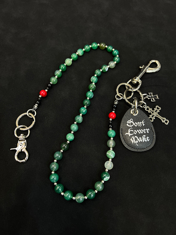 Style: Green Ball Wallet Chain Ball Pants Chain Jade Stone Beaded Wallet Chain Bead Wa